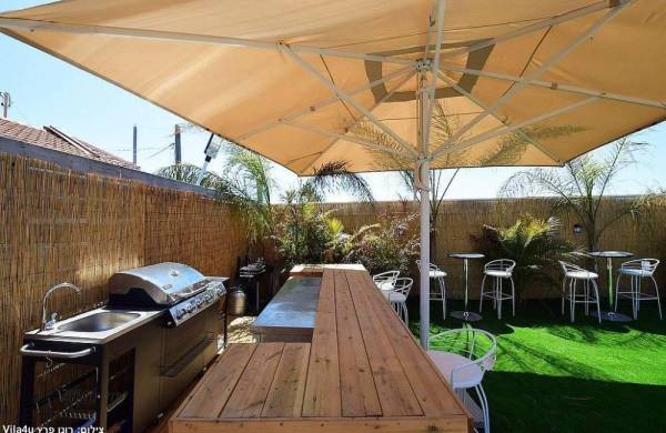- מטבח חוץ מלא הכולל גריל גז, גריל פחמים ומשטחי עבודה נוחים