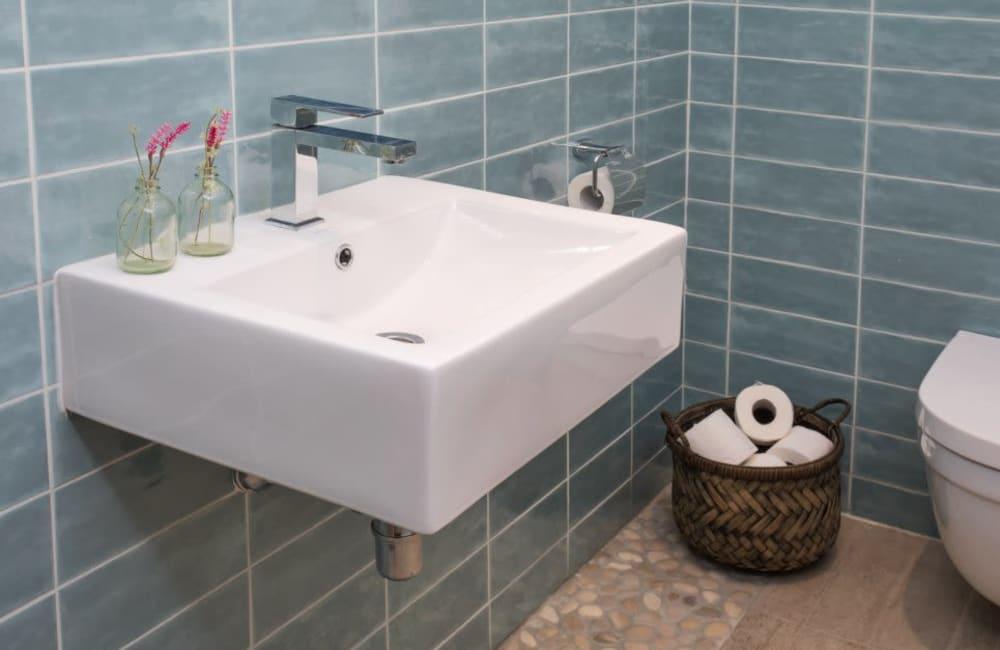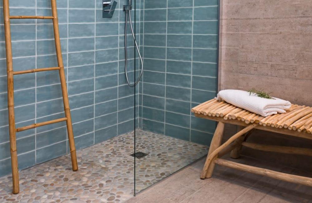 חדר רחצה עם מקלחת כפולה עם שני ראשי גשם גדולים, שירותים וכיור