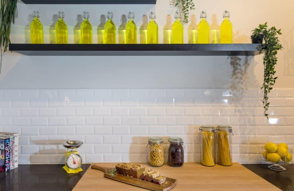 מטבח מאובזר הכולל מקרר גדול, תנור אפיה, מיקרוגל, תמי4, טוסטר, מכונת אספרסו וכיריים לבישול