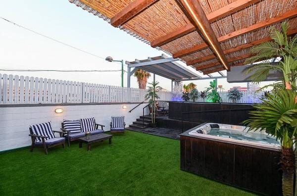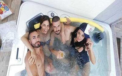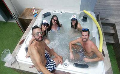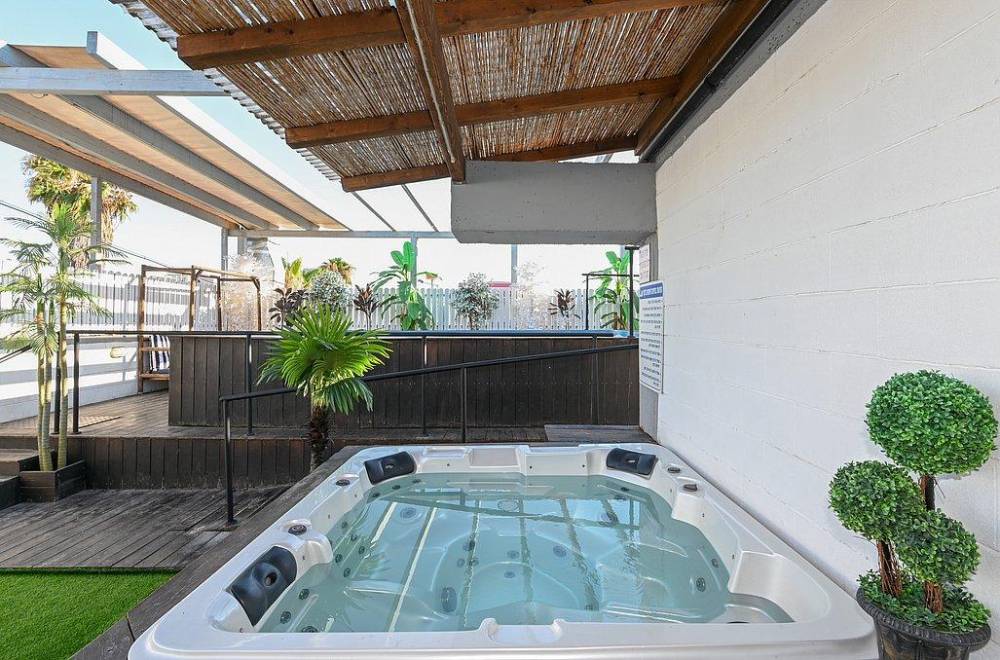 ג'קוזי ספא גדול ומחומם עם ספסלי ישיבה ומשענות ראש
