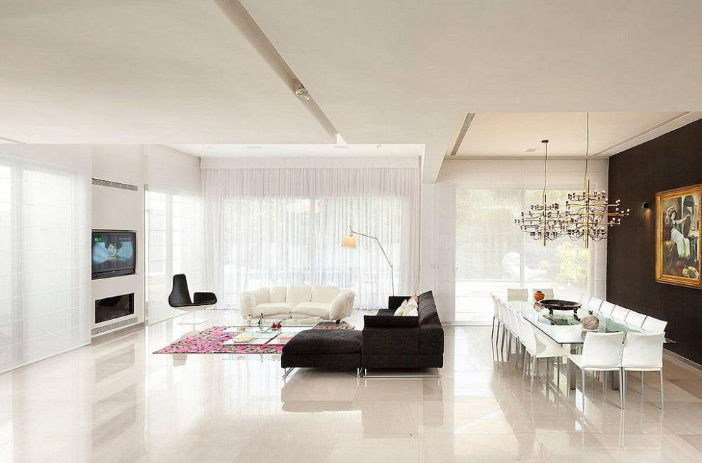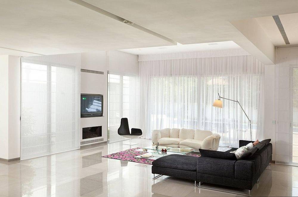 סלון מרווח ומעוצב עם מערכת ישיבה וטלוויזיה