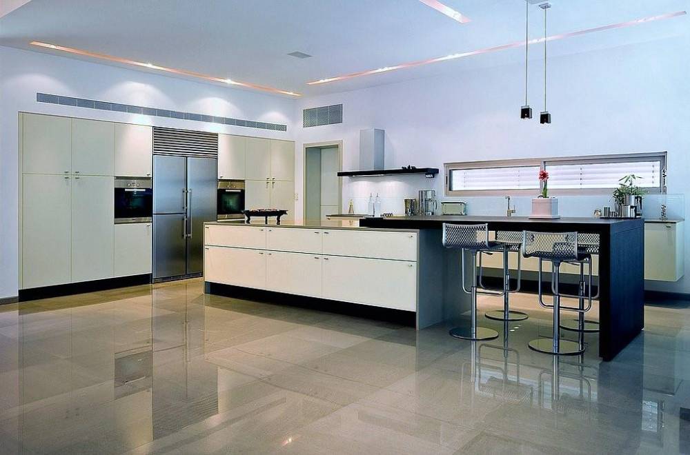 מטבח מאובזר (מקרר גדול, תנור, כיריים, כלי אוכל והגשה)