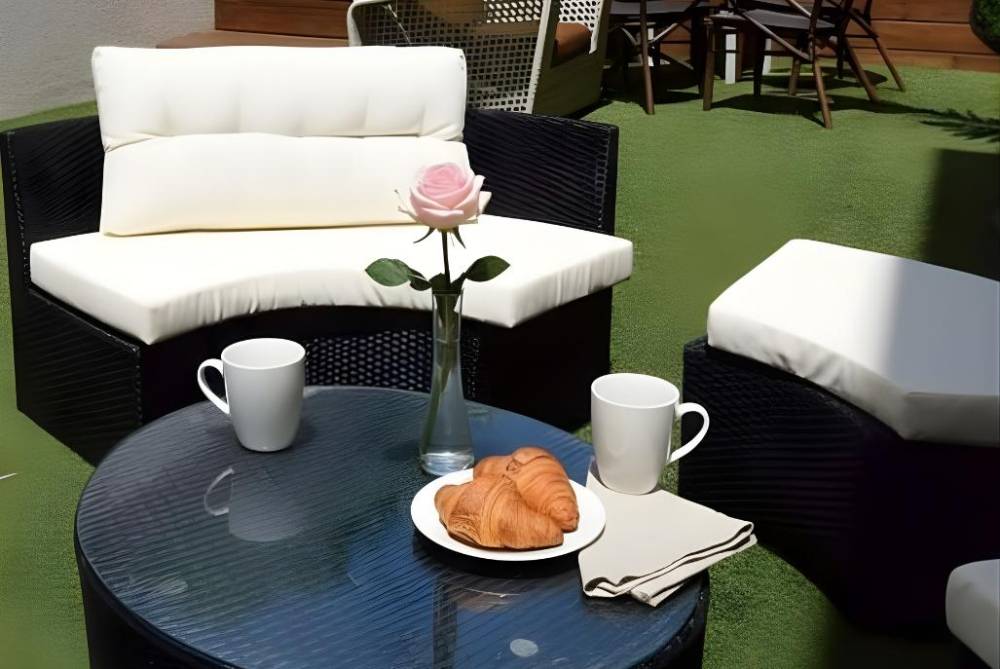מגוון פינות ישיבה, נדנדות ושולחנות