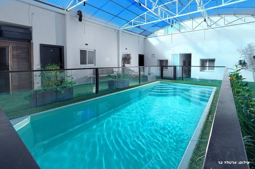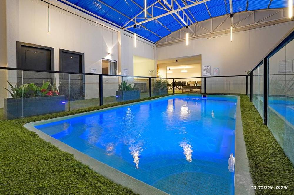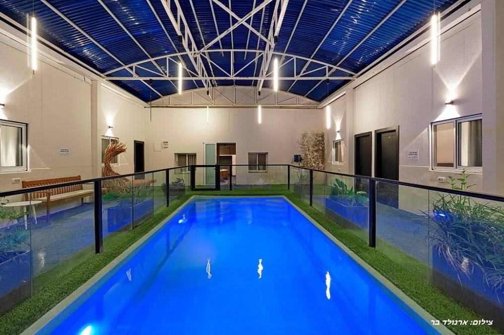 - בריכת שחייה בטיחותית, מחוממת ומקורה בגודל 7 על 4 מטר ועומק 1.40 מטר