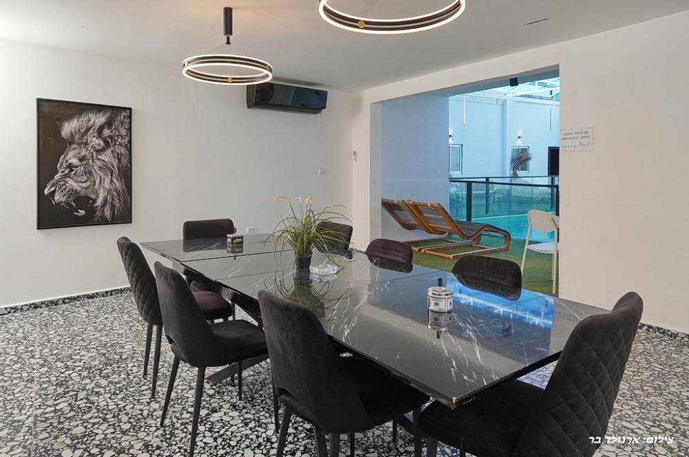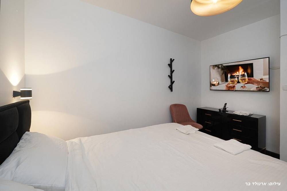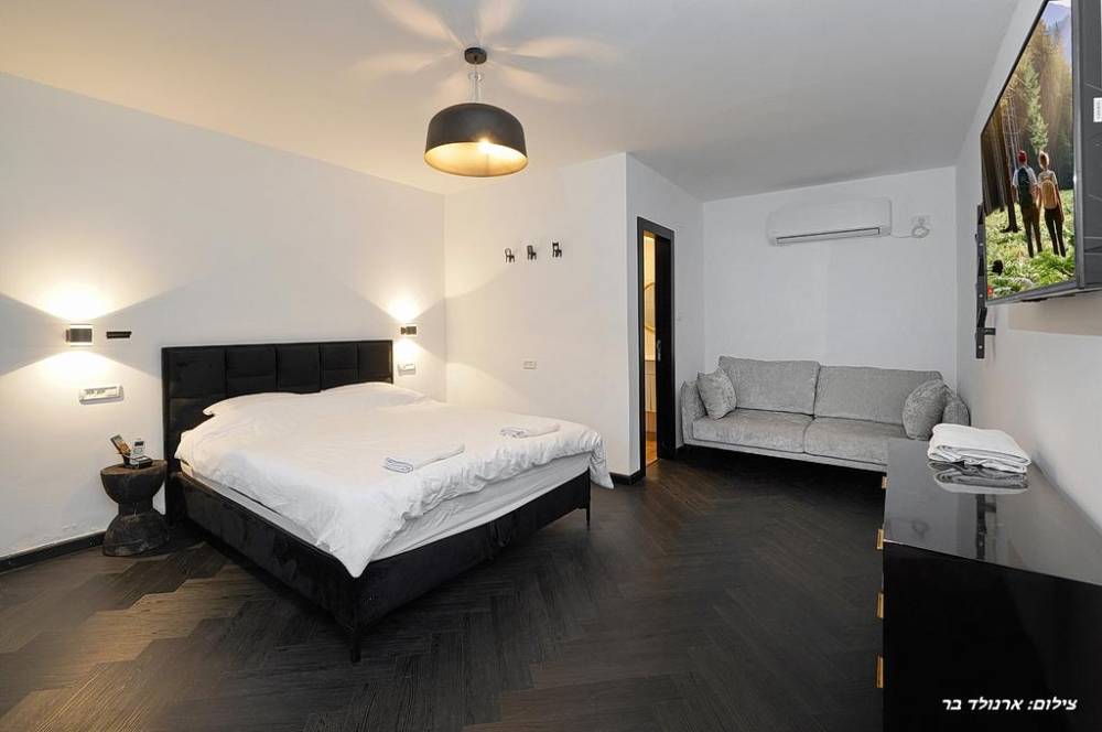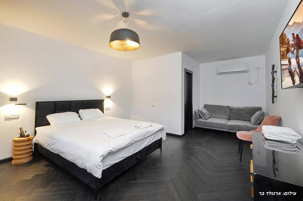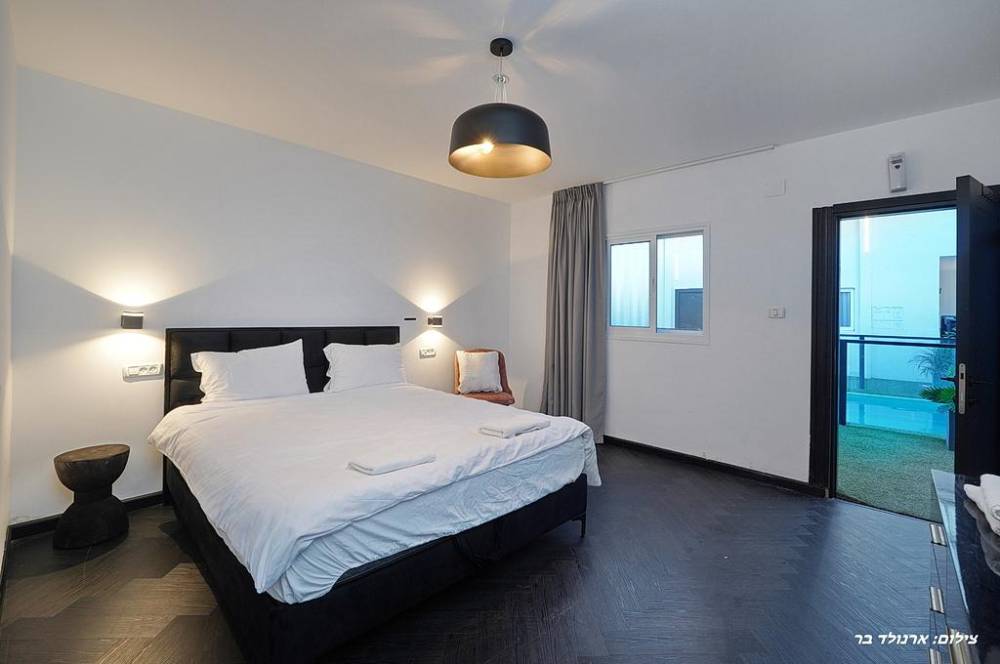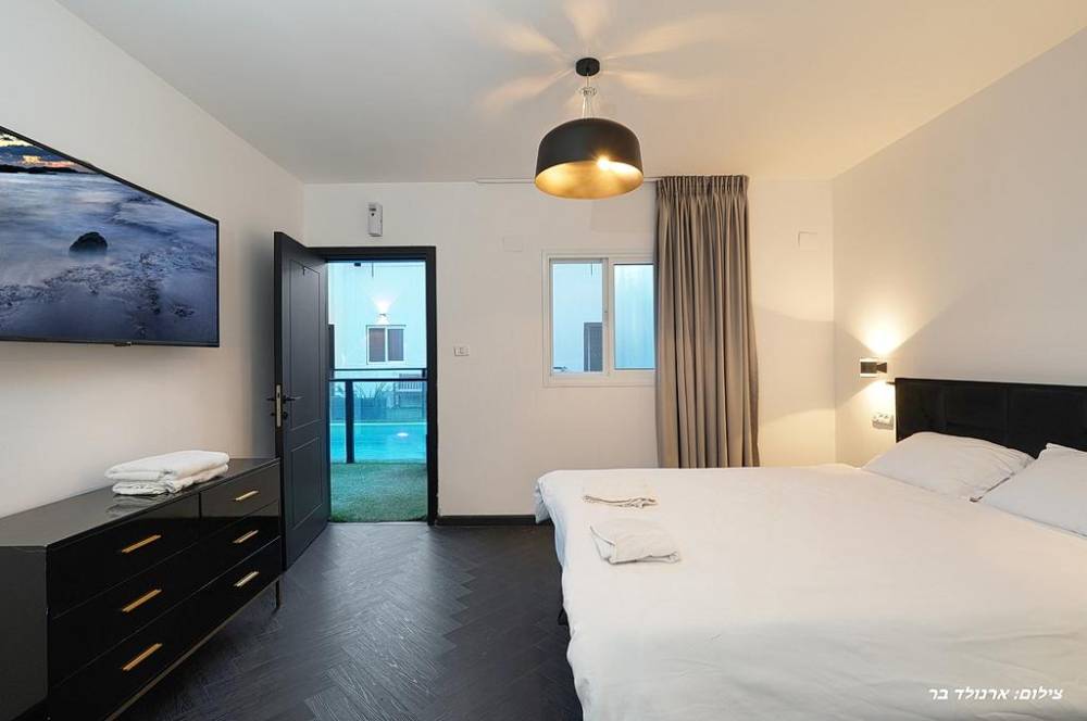 - 9 חדרי שינה הכוללים: מיטה זוגית יהודית, מיזוג אוויר, מסך LCD, שידות אחסון, חדר רחצה פרטי