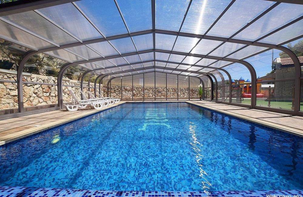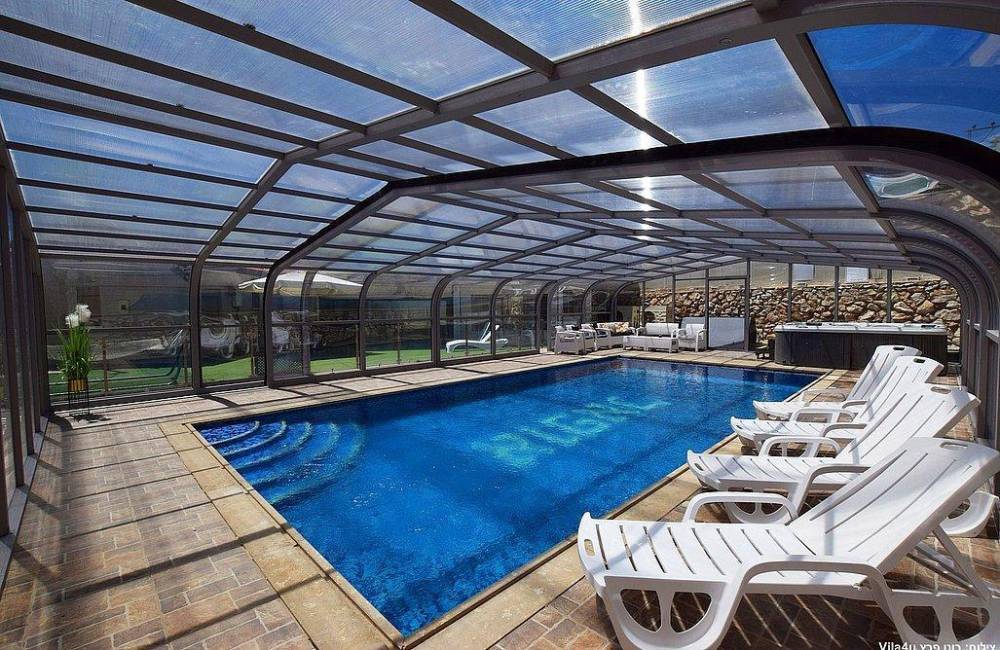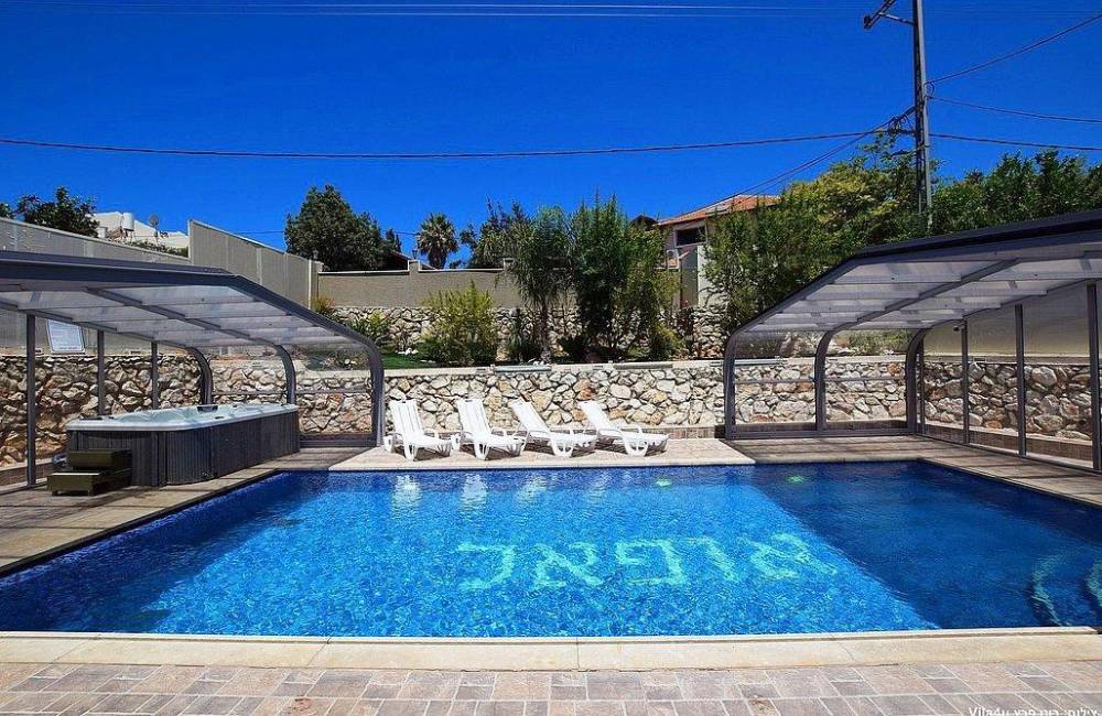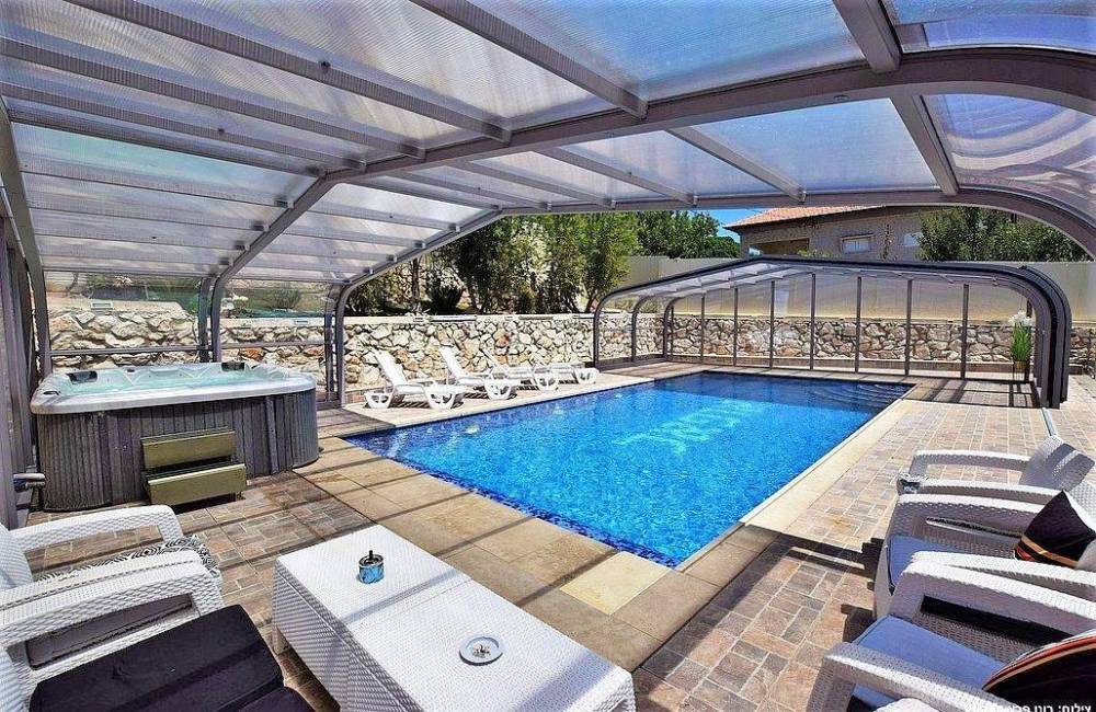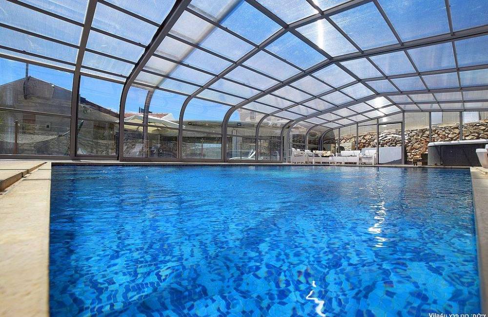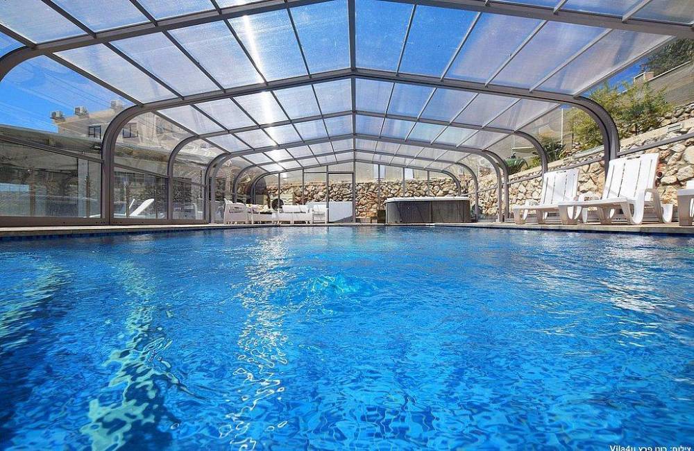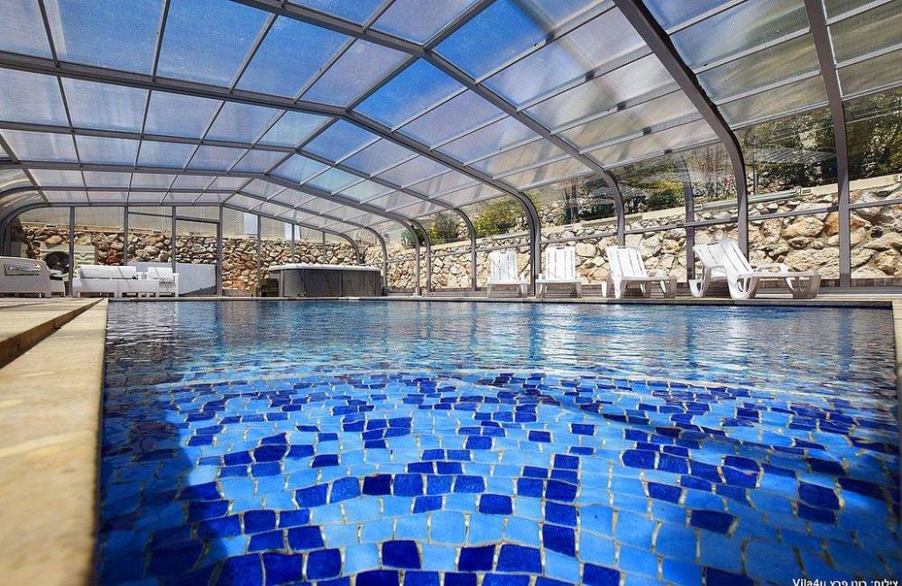 בריכת שחייה ענקית (מחוממת מקורה בחורף) עם רצפת פסיפס