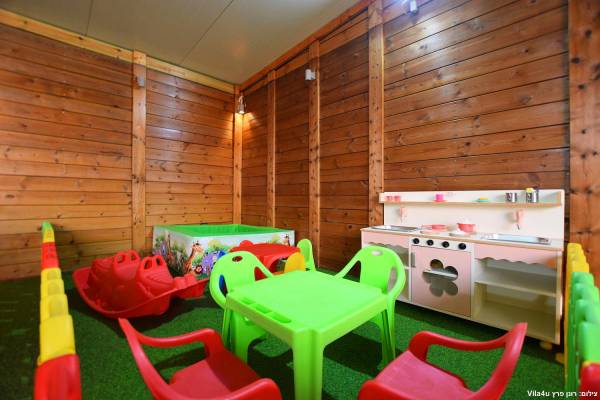 פינת משחקים לילדים עם שולחן וכיסאות, ג'ימבורי, מטבח לילדים ומגלשה