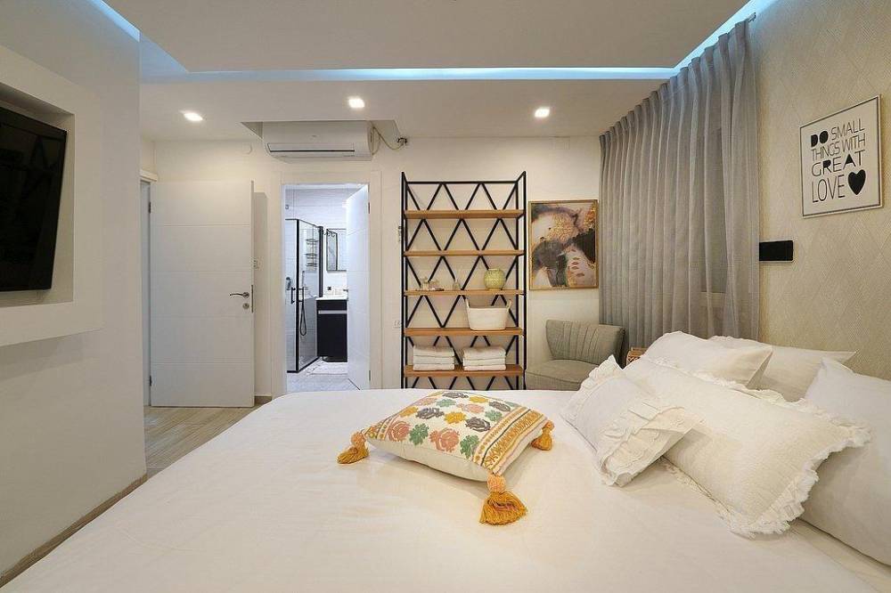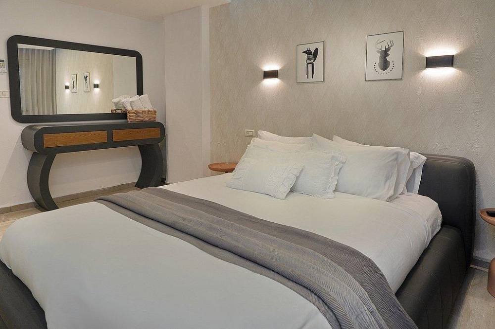 3 חדרי שינה: מיטה זוגית, מיזוג אוויר, מסך צפייה ושידות