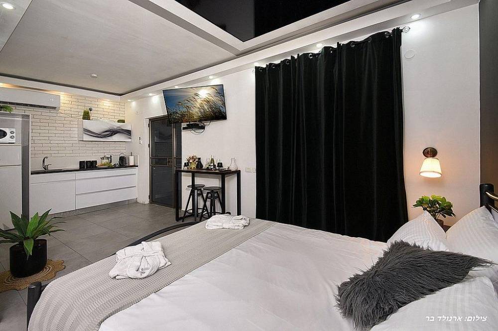 הסוויטה כוללת: מיטה זוגית, מטבח מאובזר, דלפק ישיבה