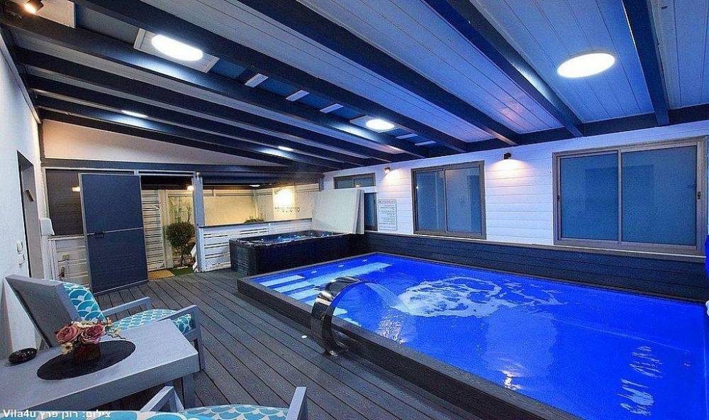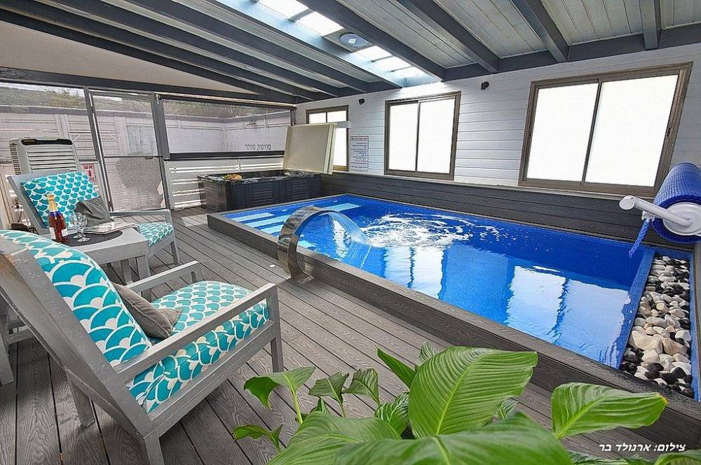 בריכת שחיה מחוממת מקורה ופרטית עם זרמי ג'ט