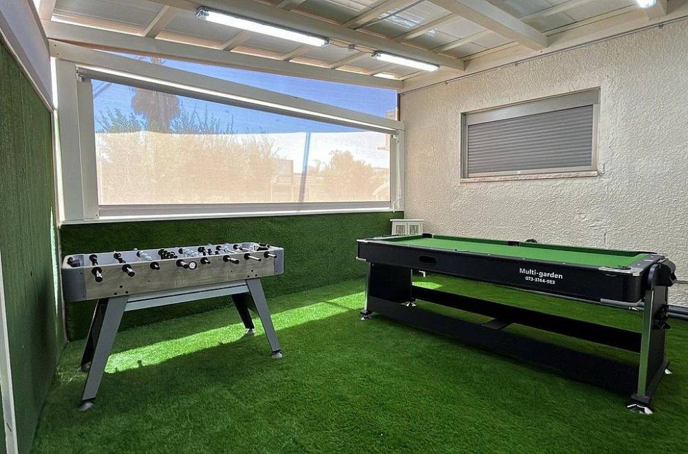 חדר משחקים הכולל: שולחן סנוקר, כדורגל והוקי אוויר