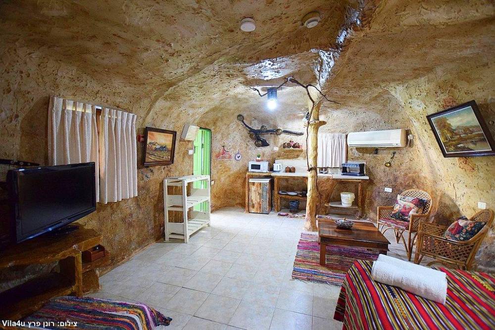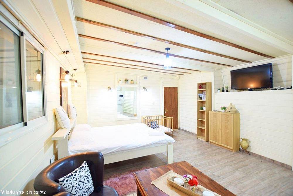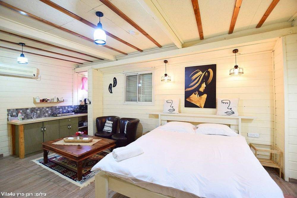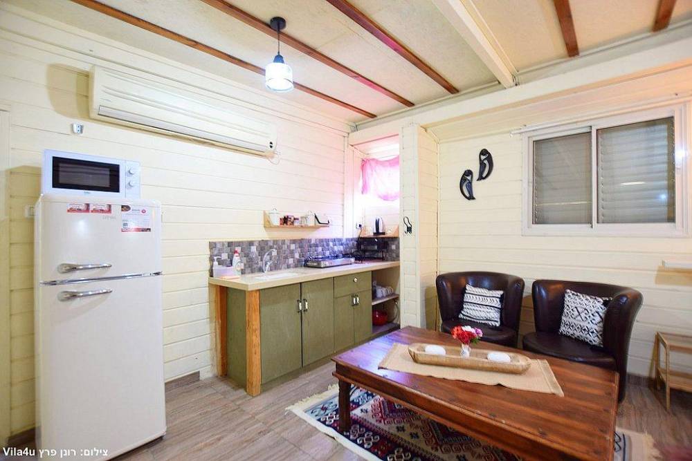 חדר שינה 1: מיטה זוגית, טלוויזיה, מזגן, מטבחון הכולל: מיקרוגל, מקרר וקומקום חשמלי