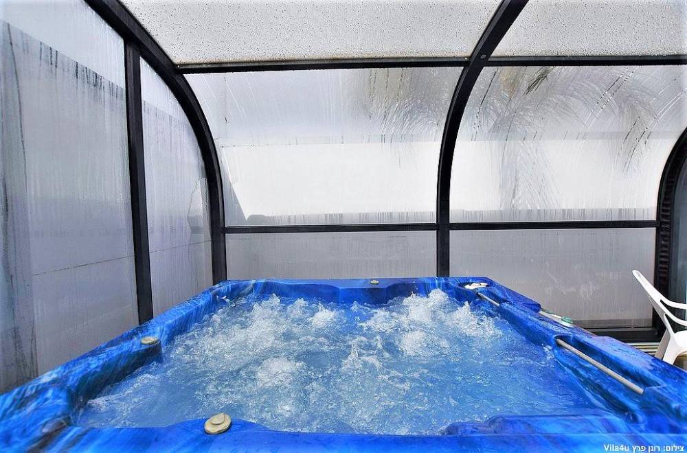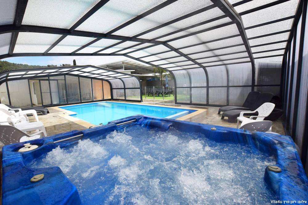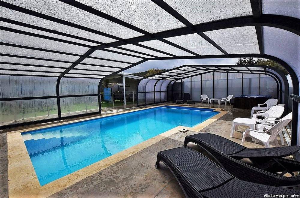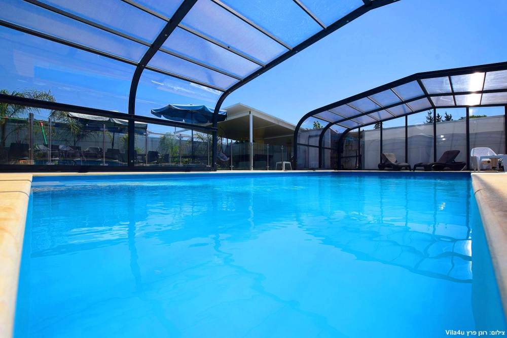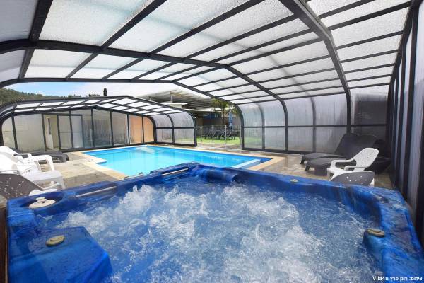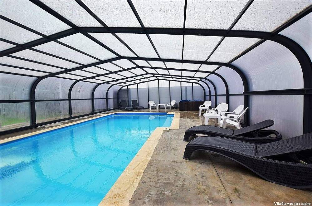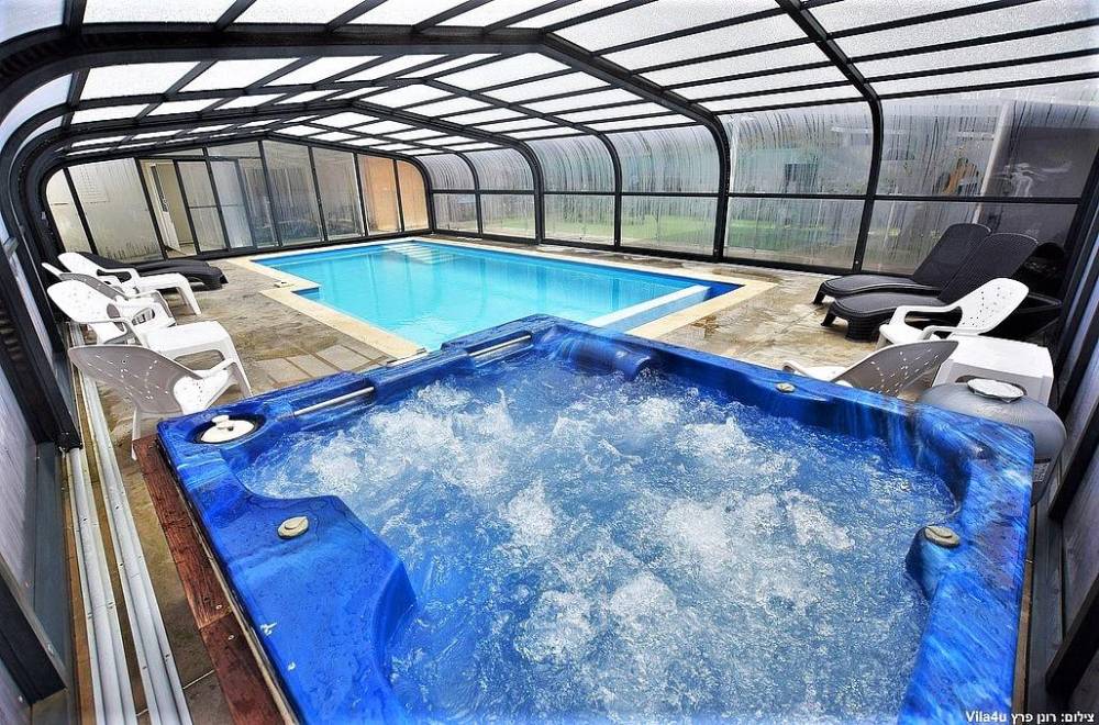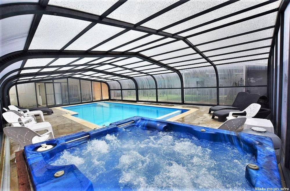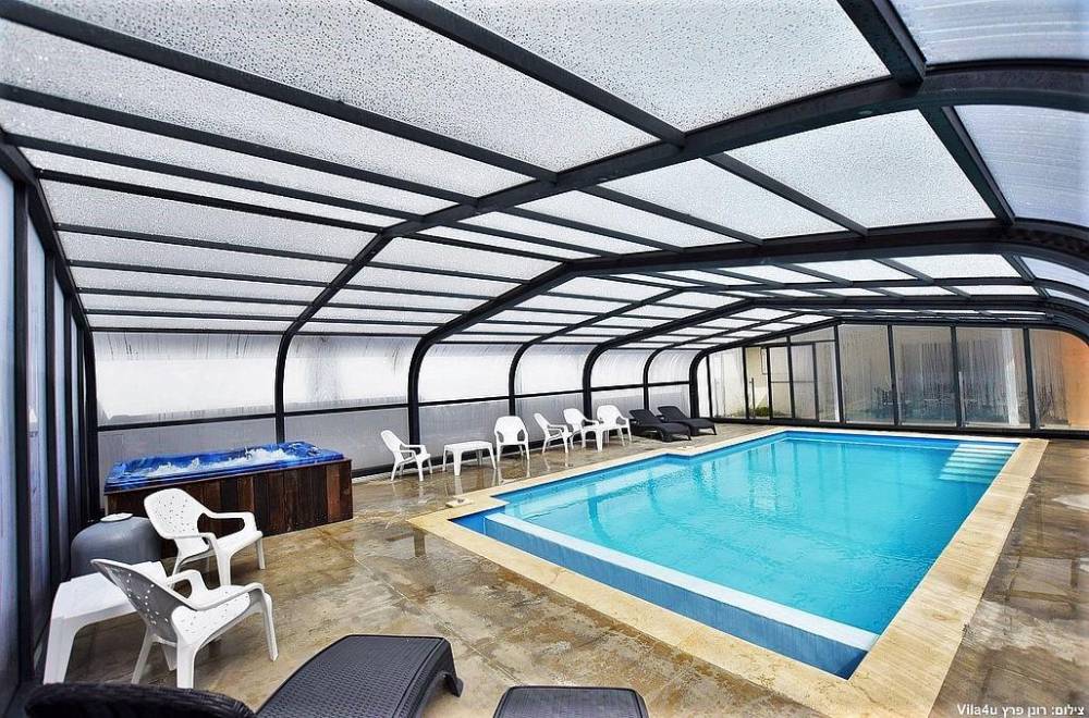 בריכה מחוממת ומקורה עם זרמי מים, גודל הבריכה 9/4.5 מ' עומק 1.40 מ'