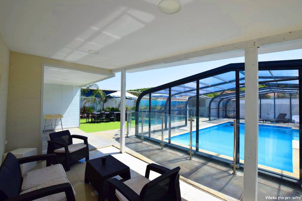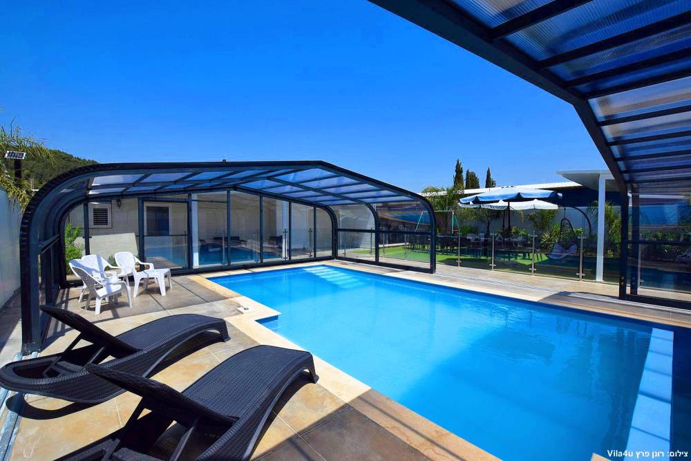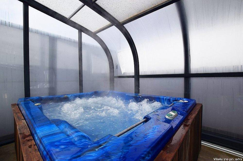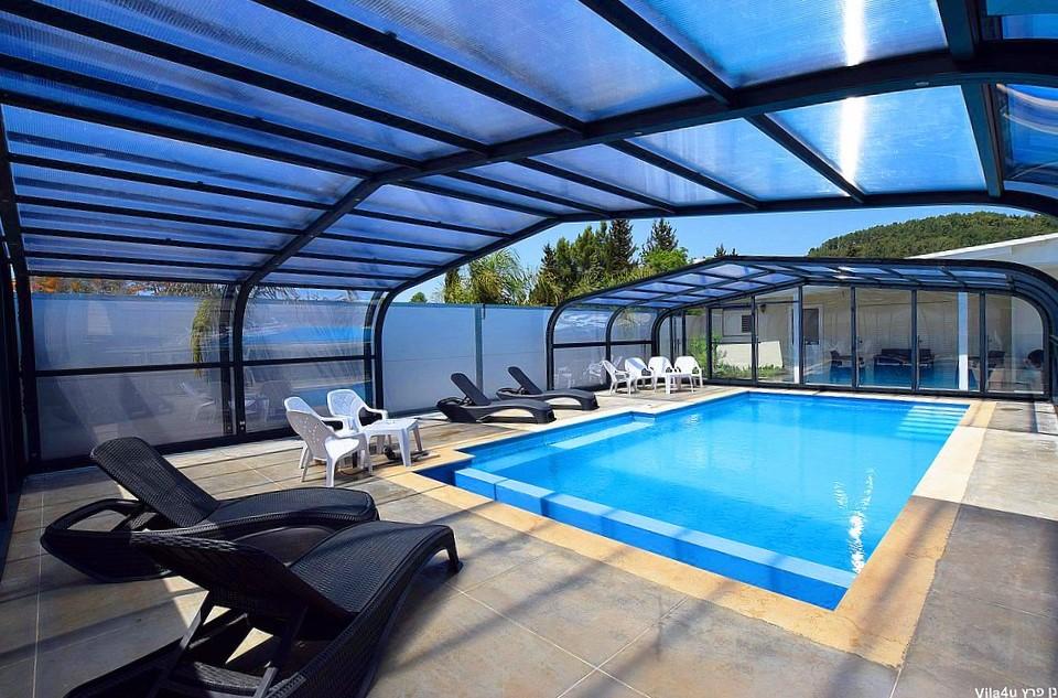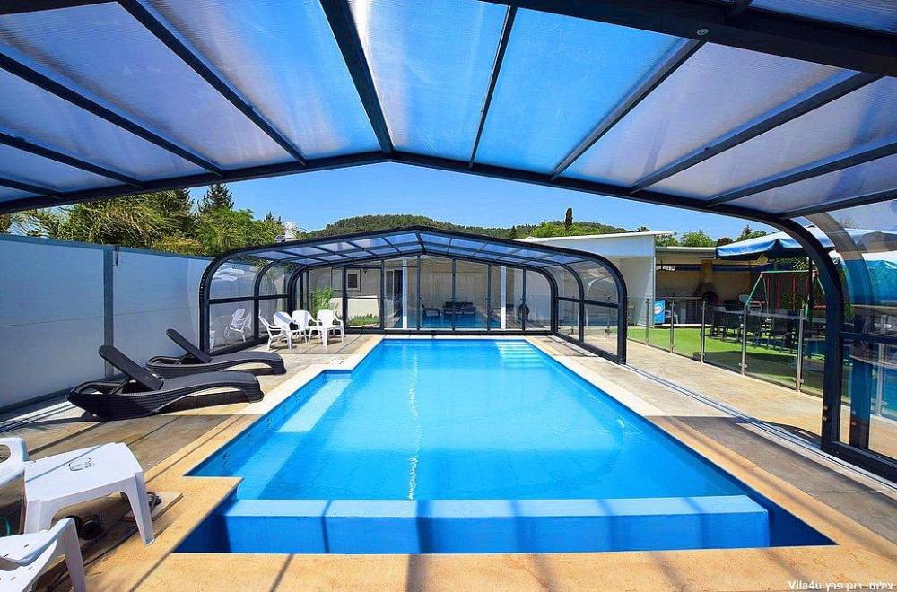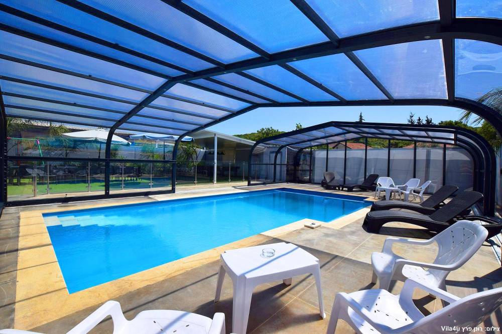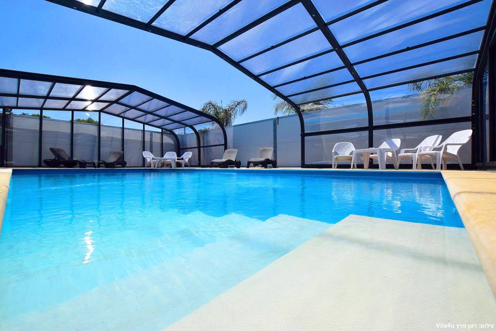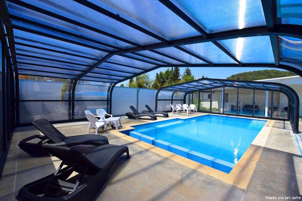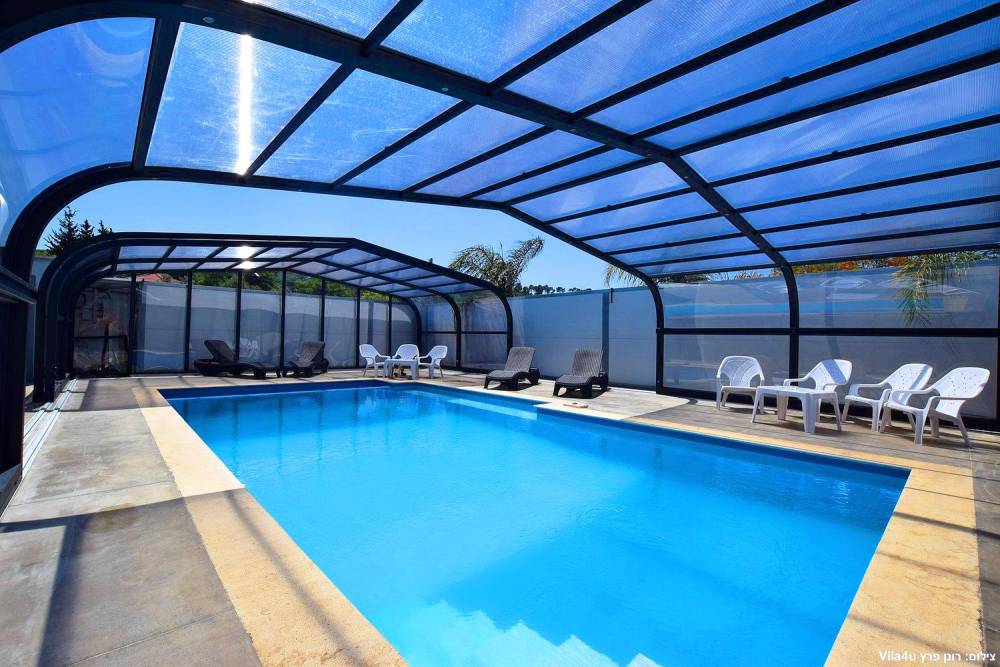 בריכה מחוממת ומקורה עם זרמי מים, גודל הבריכה 9/4.5 מ' עומק 1.40 מ'