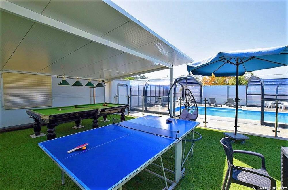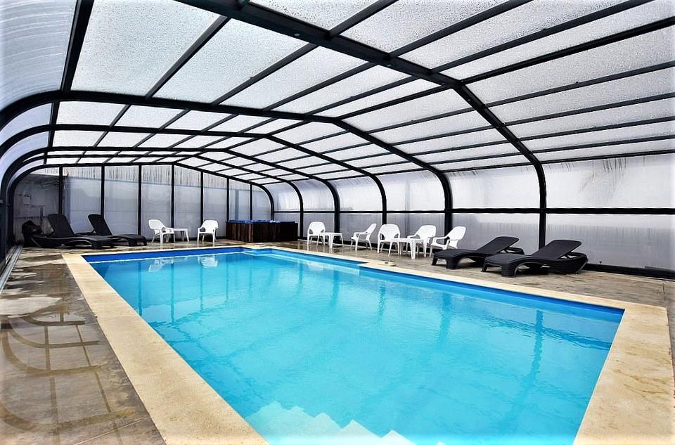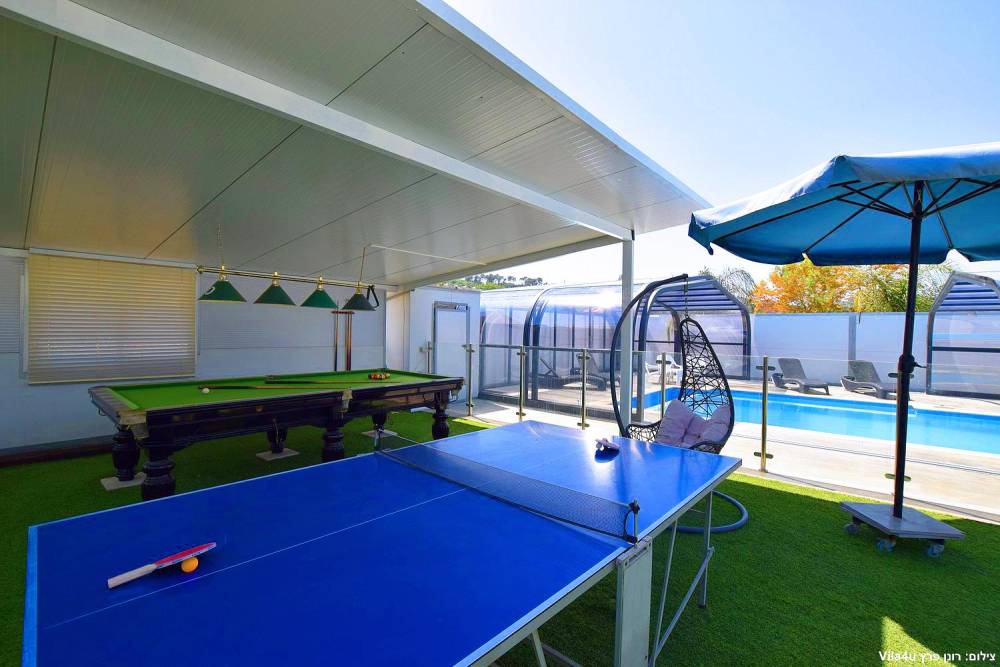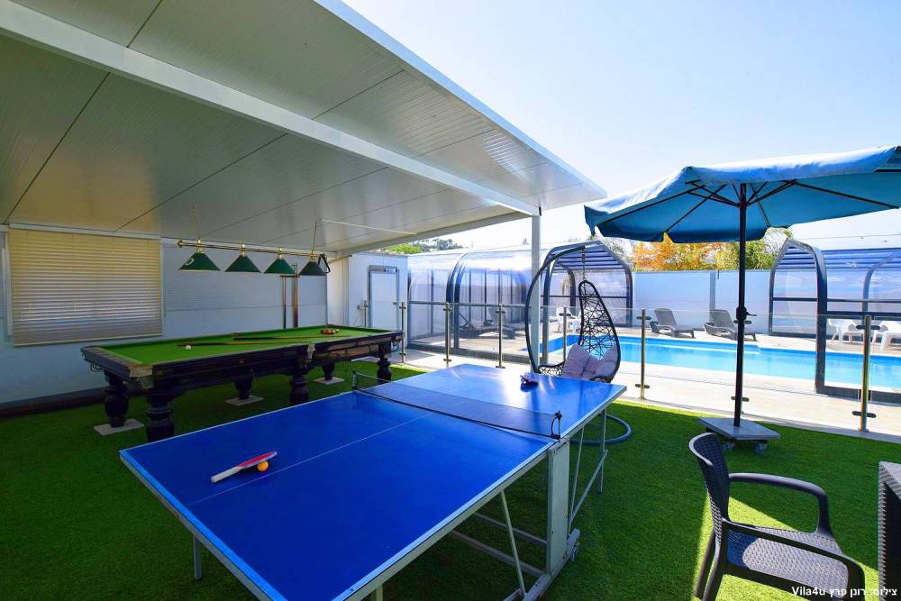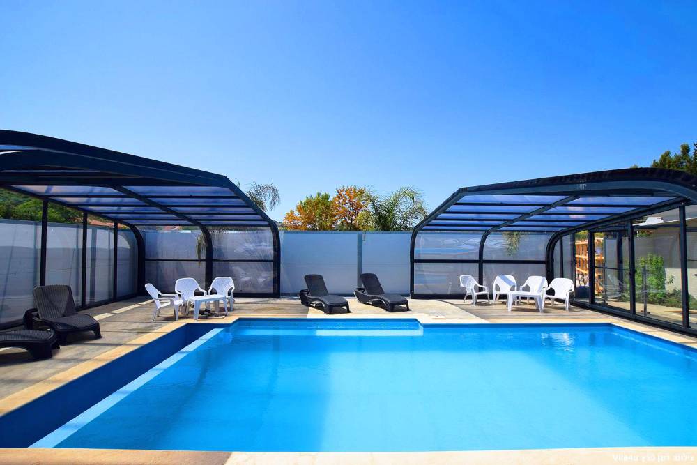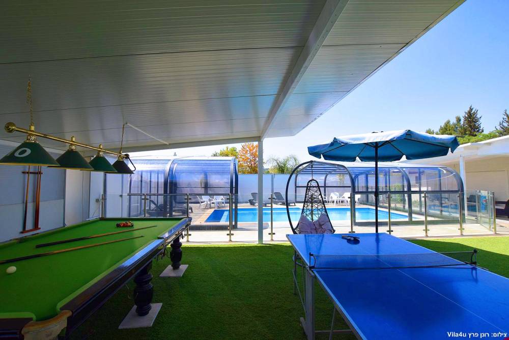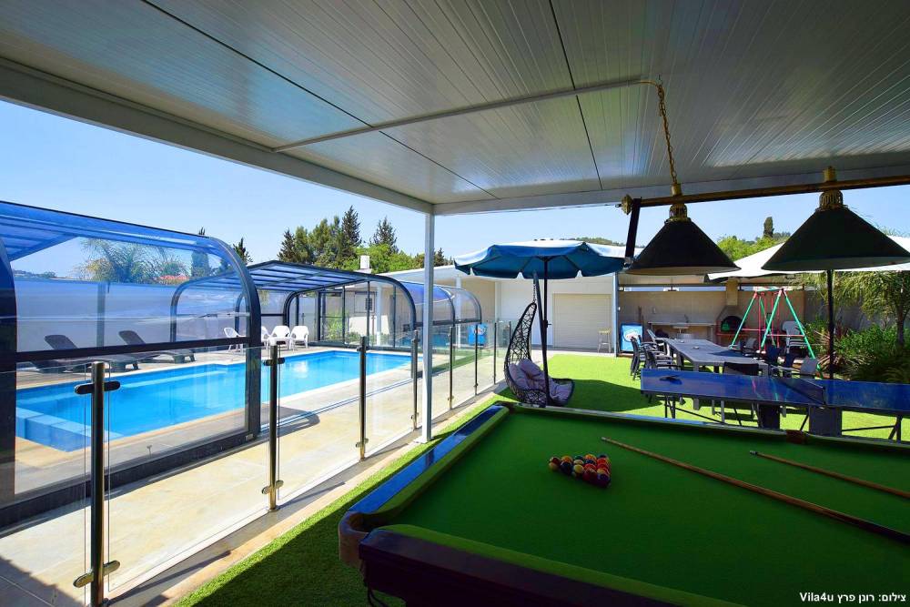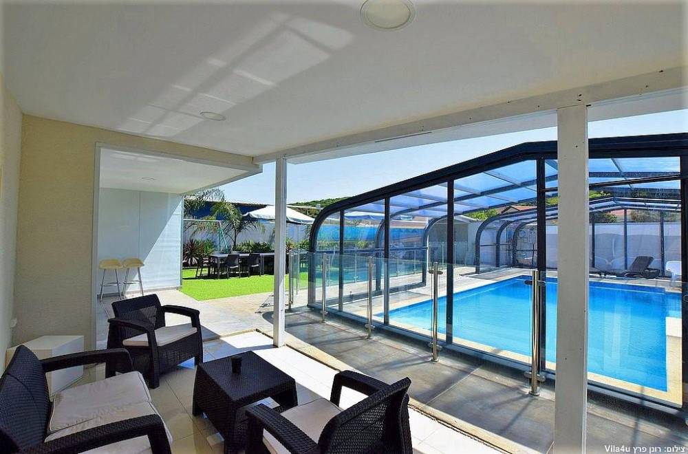 בריכה מחוממת ומקורה עם זרמי מים, גודל הבריכה 9/4.5 מ' עומק 1.40 מ'