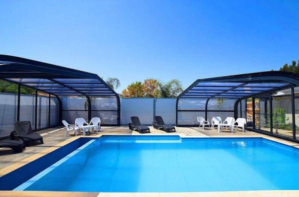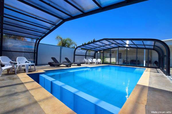 בריכה מחוממת ומקורה עם זרמי מים, גודל הבריכה 9/4.5 מ' עומק 1.40 מ'