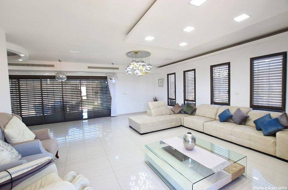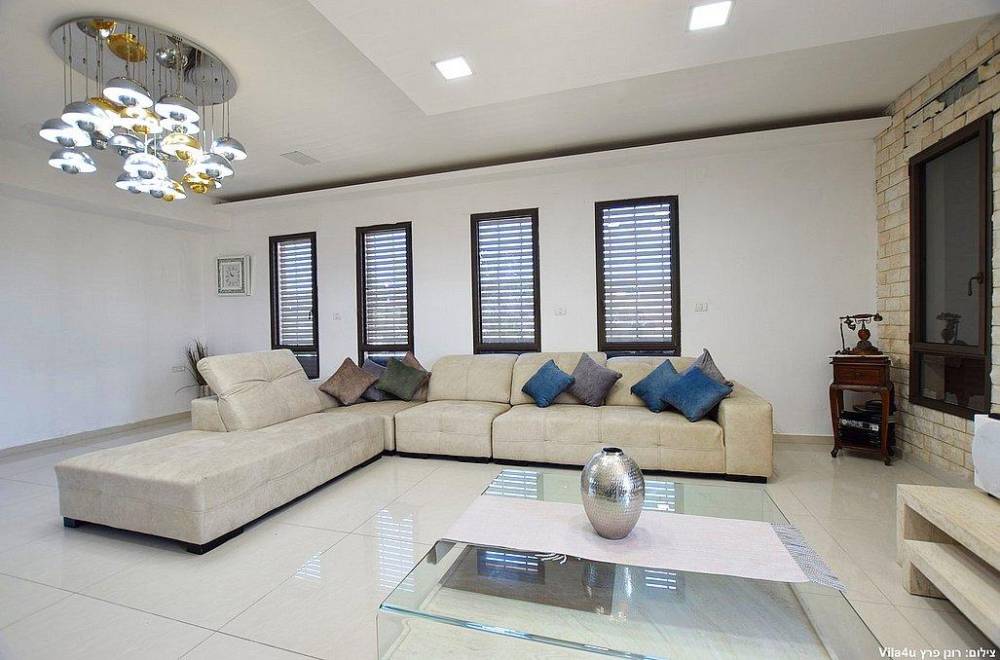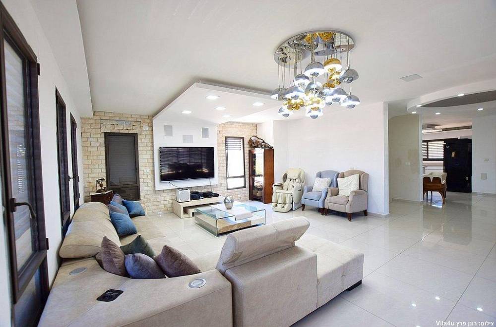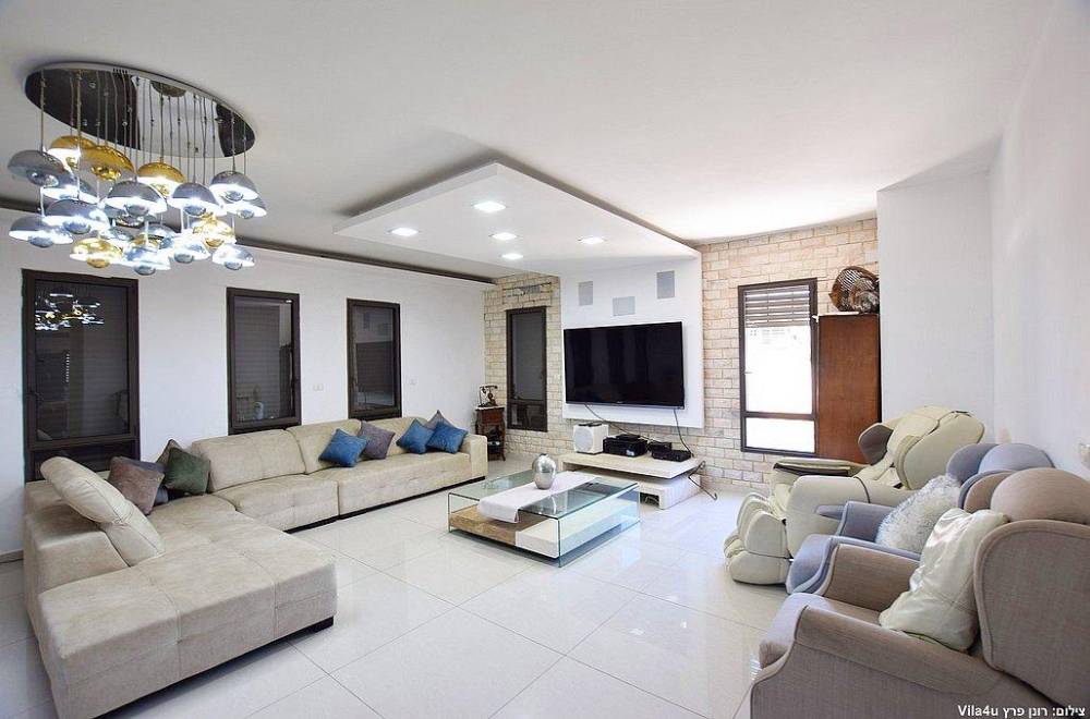 סלון מעוצב עם מערכות ישיבה, ספות וטלוויזיה