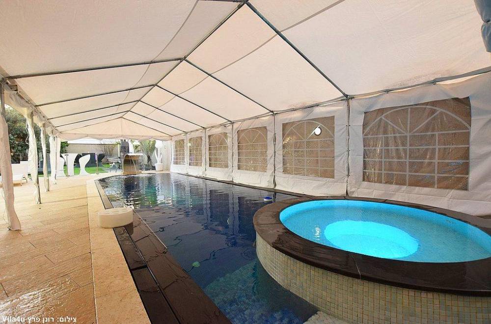 בריכת שחייה מחוממת, מקורה ומגודרת בשילוב ג'קוזי מחומם בגודל 12 על 4