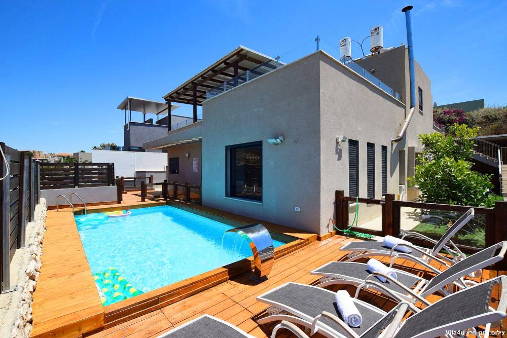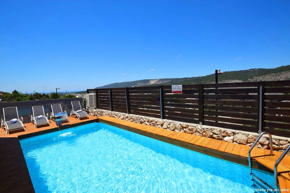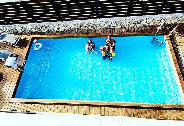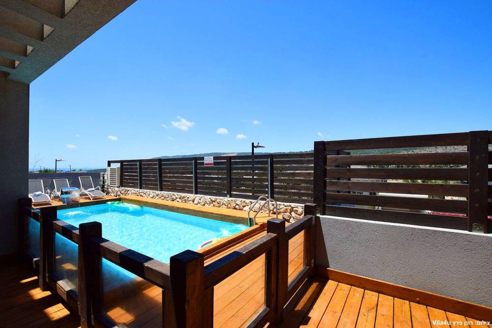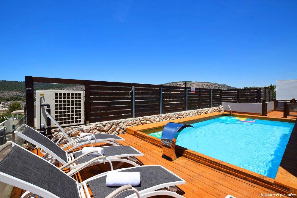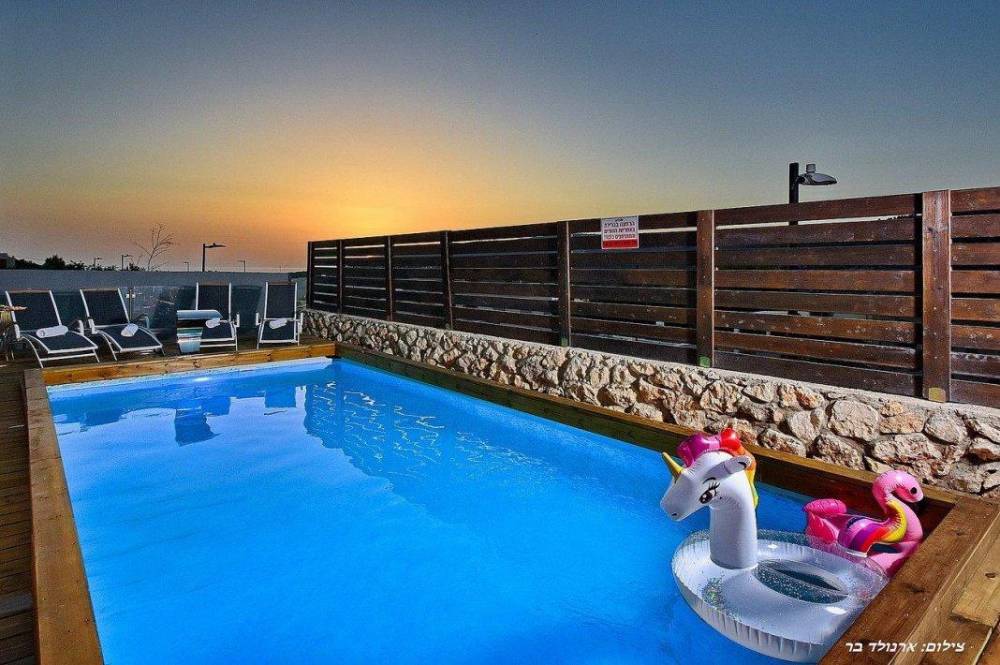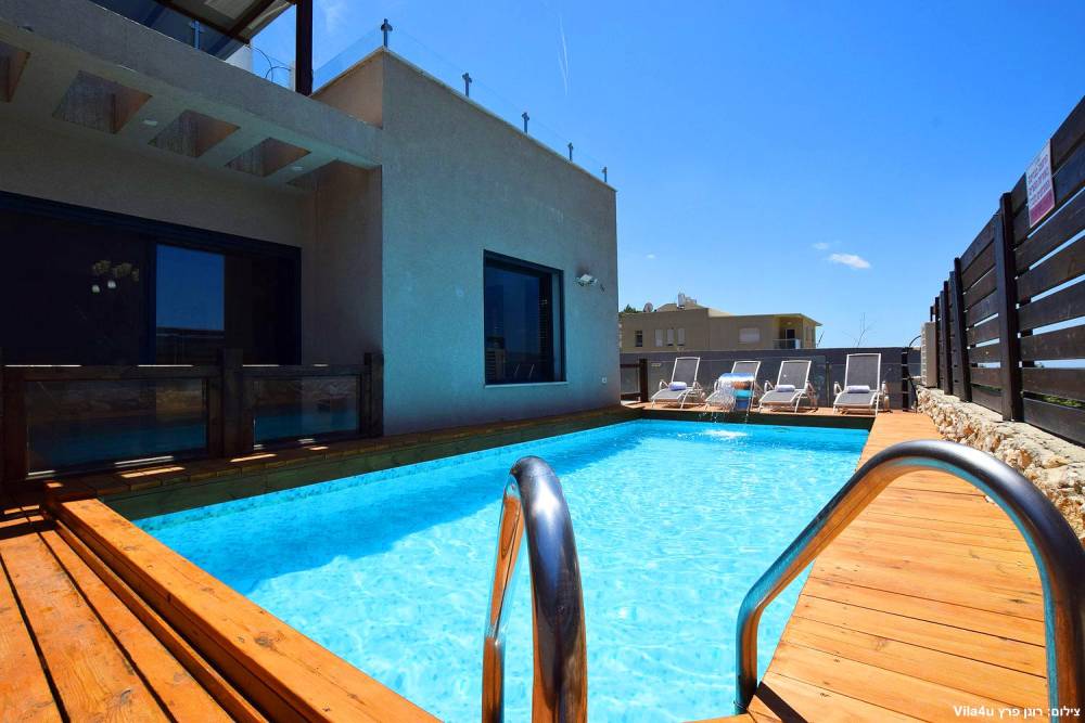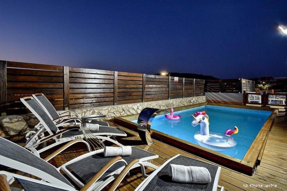 בריכת שחייה מחוממת ומקורה בחודשי החורף בגודל 8X4, מחופה ברצפת דק איכותי