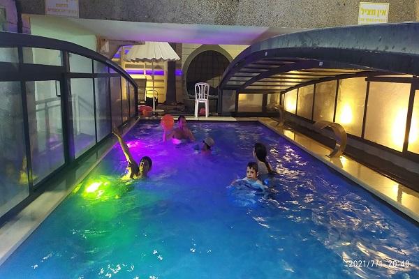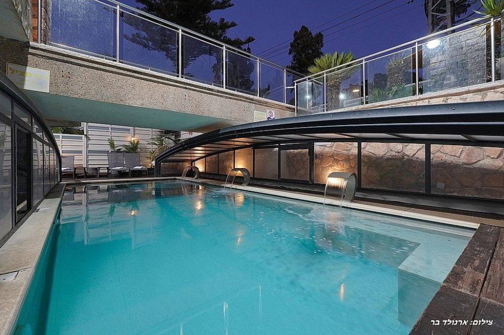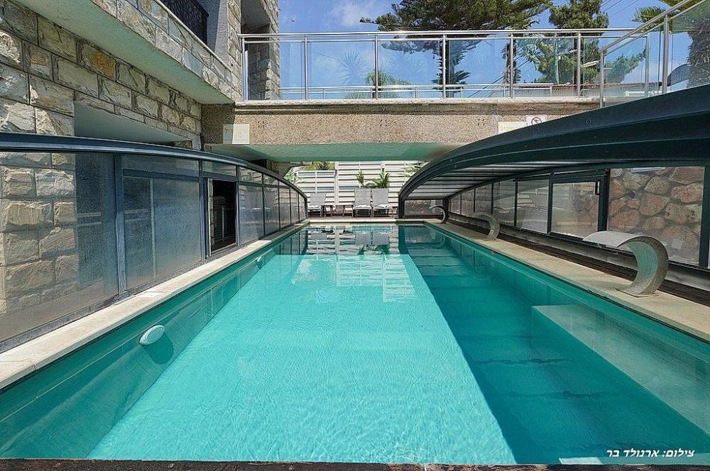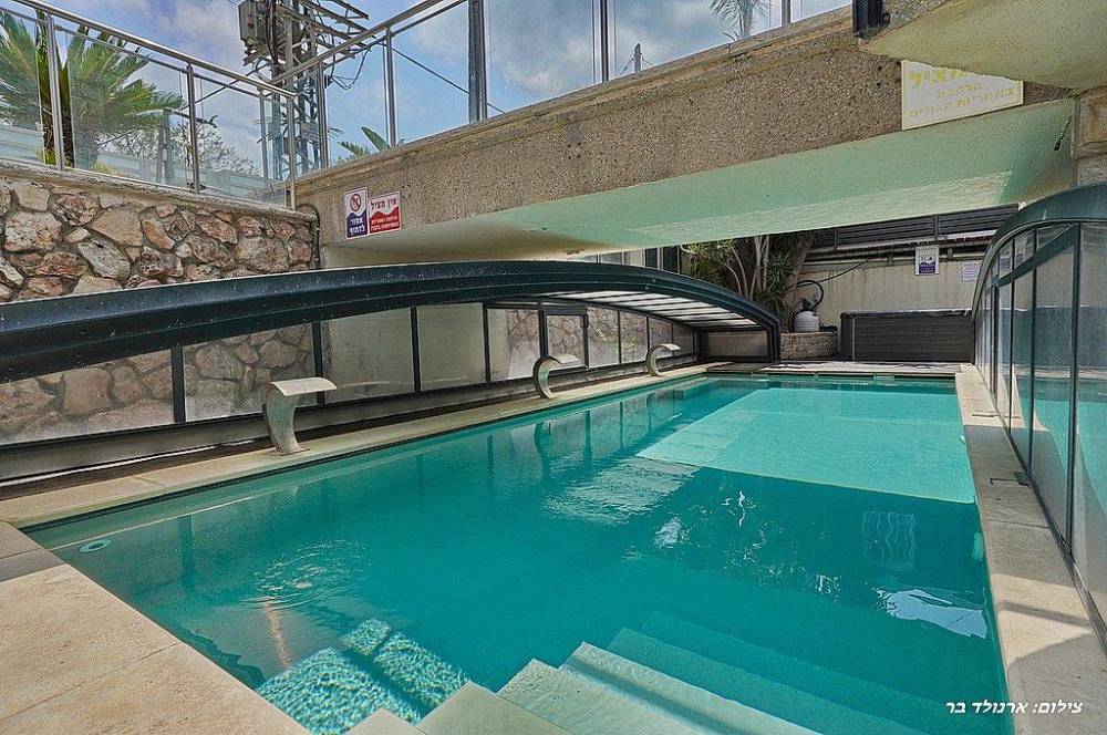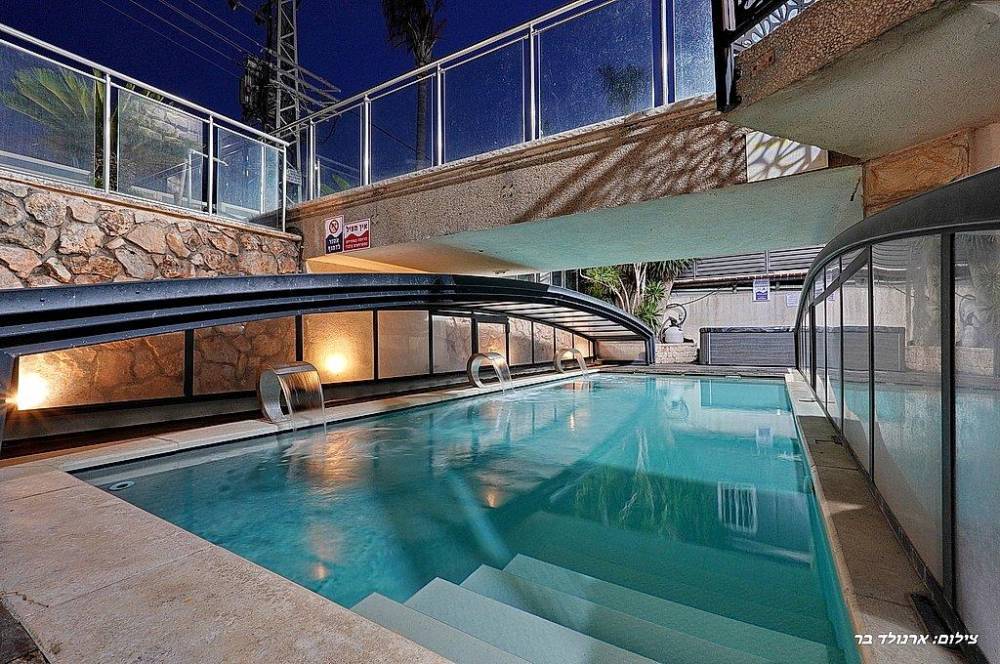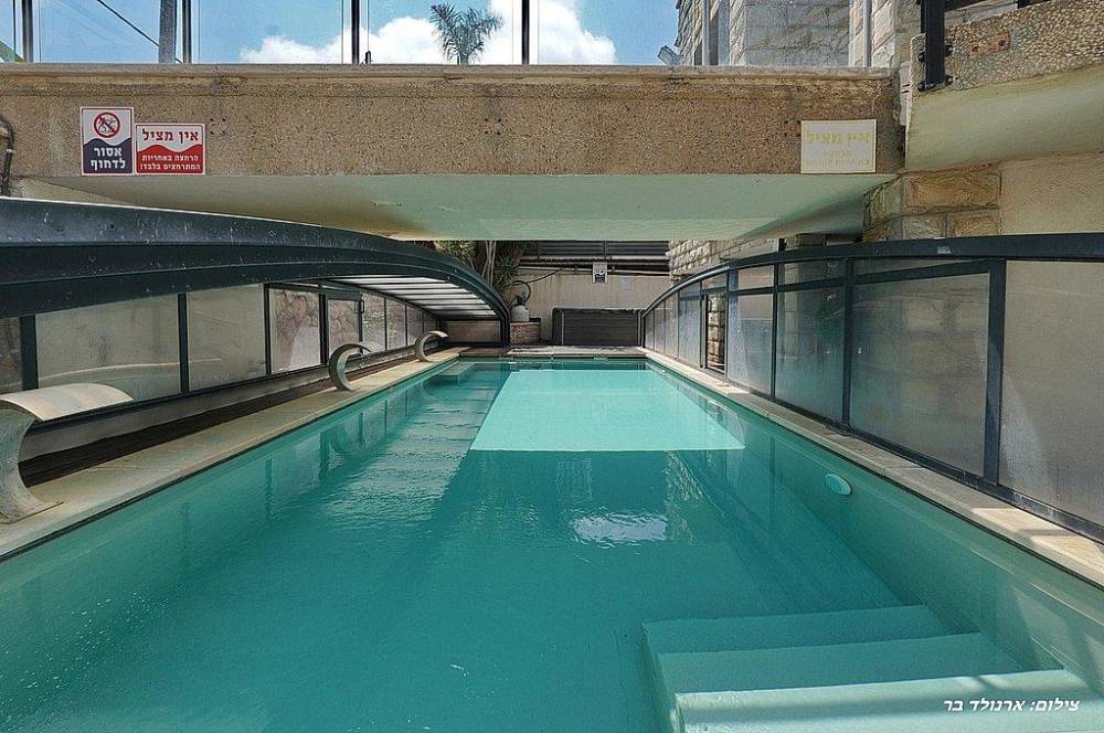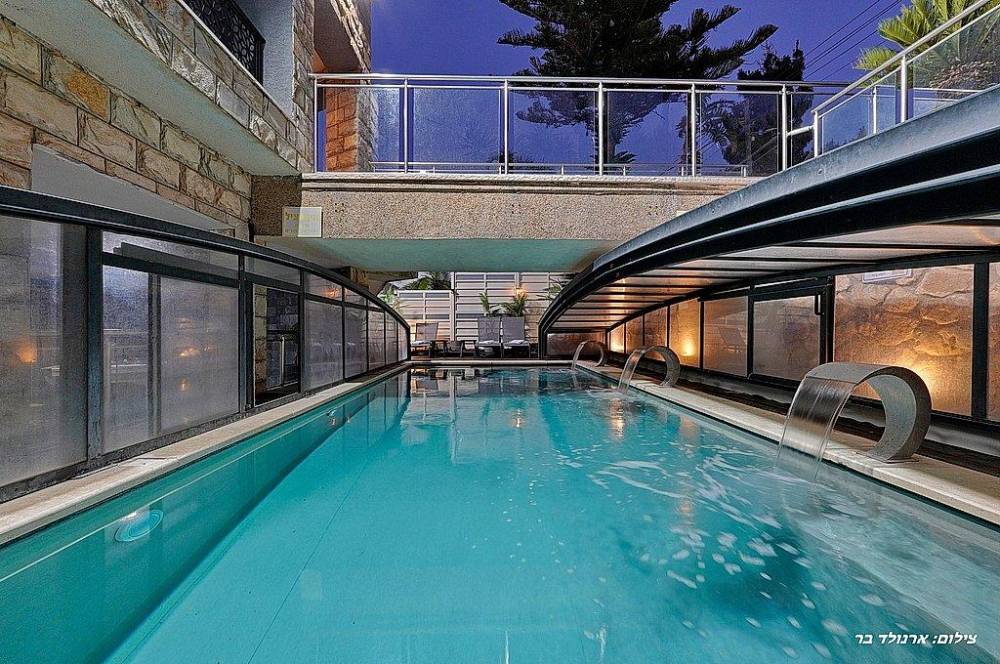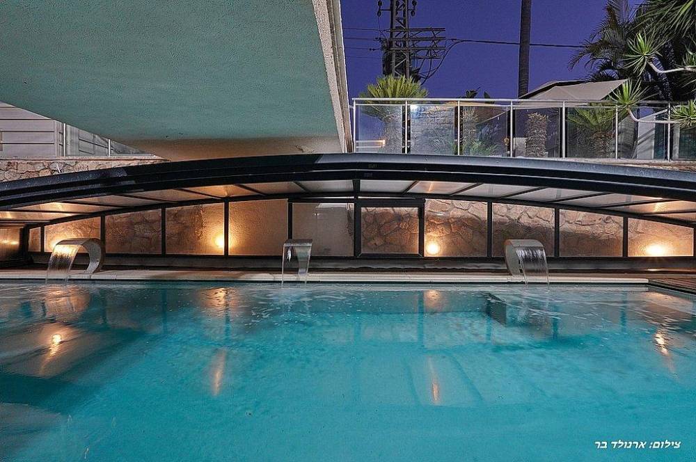 בריכת שחייה בגודל 10 על 4 מטר (מחוממת ומקורה בחורף) עם מפלי מים