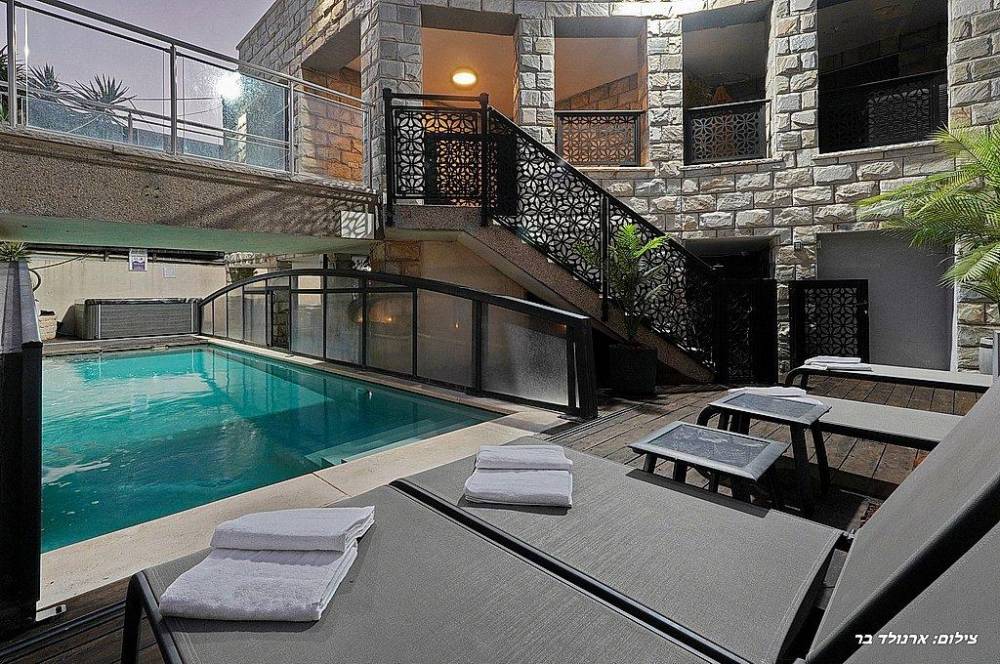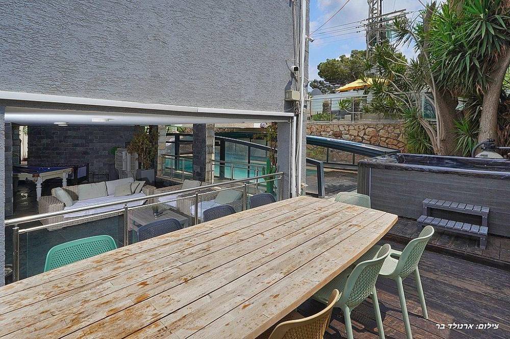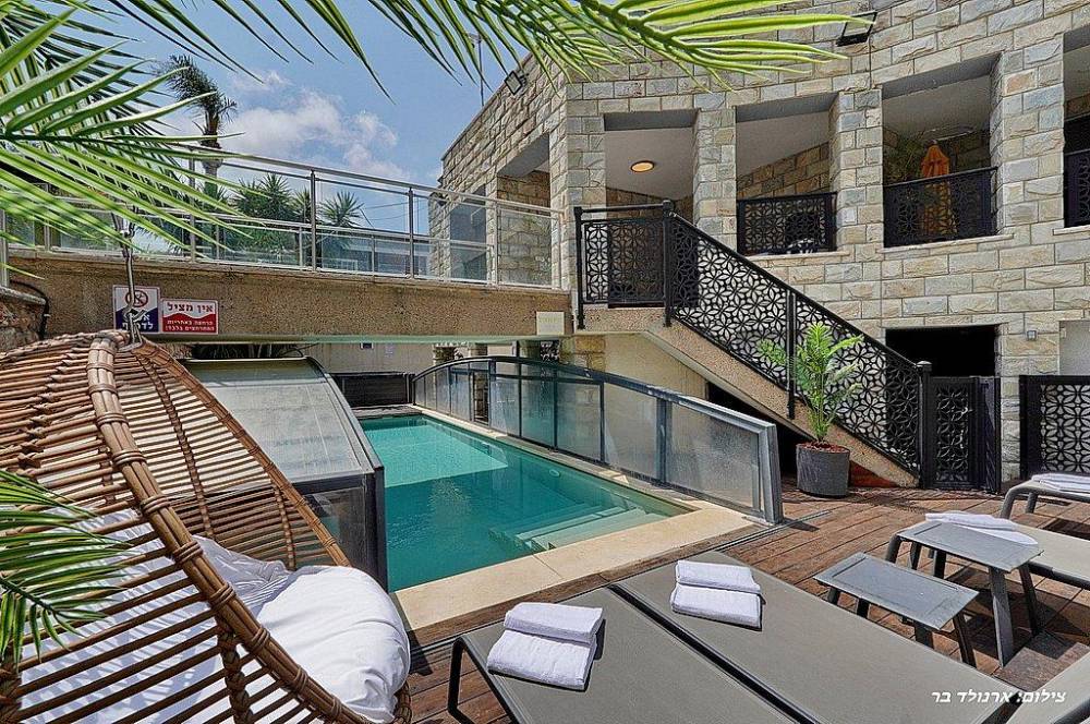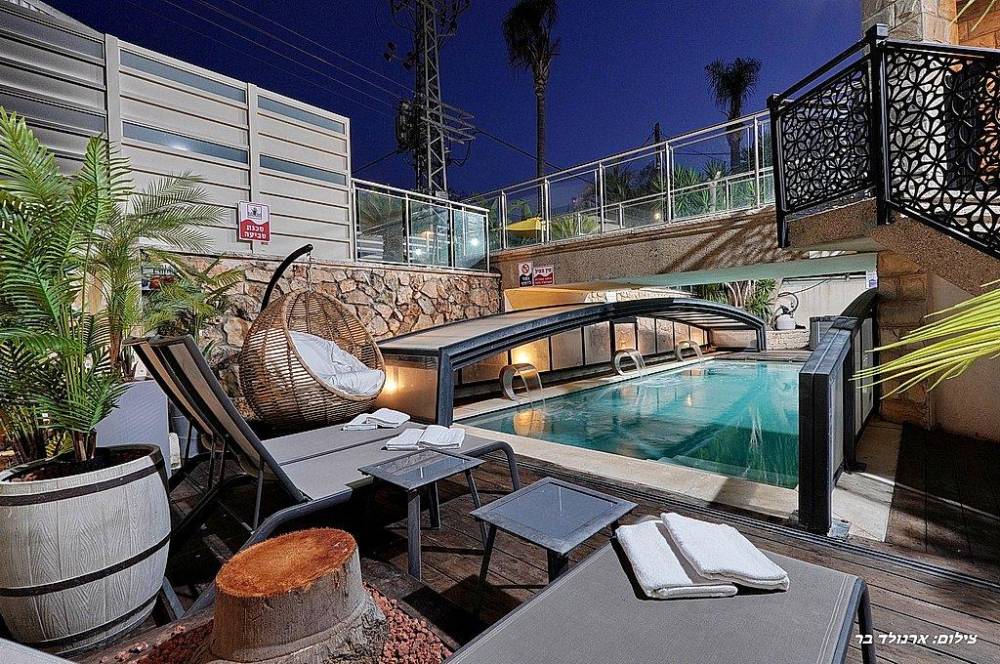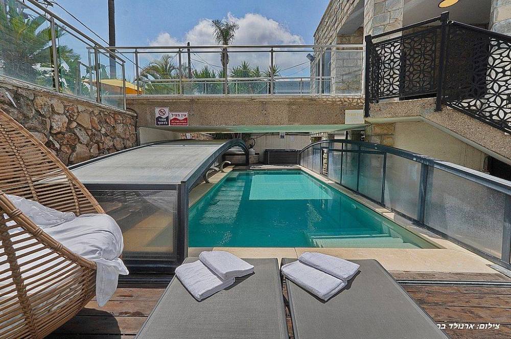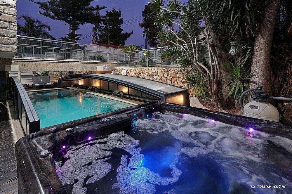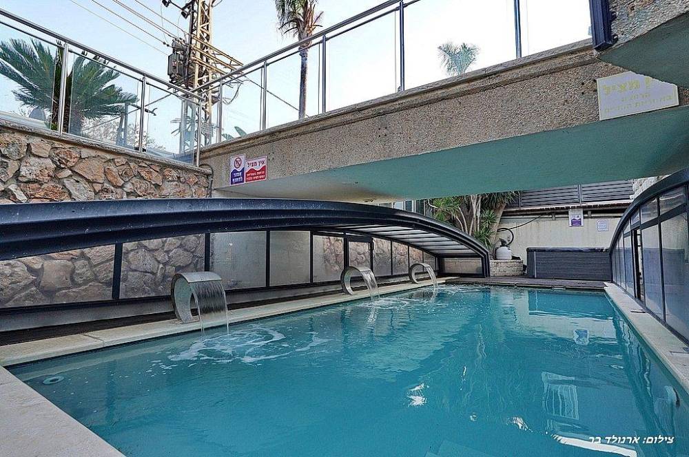 בריכת שחייה בגודל 10 על 4 מטר (מחוממת ומקורה בחורף) עם מפלי מים