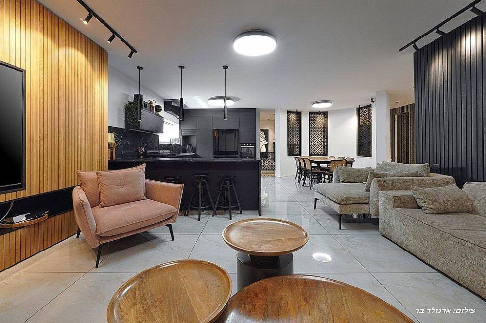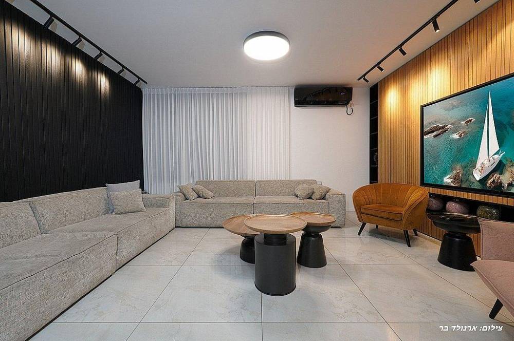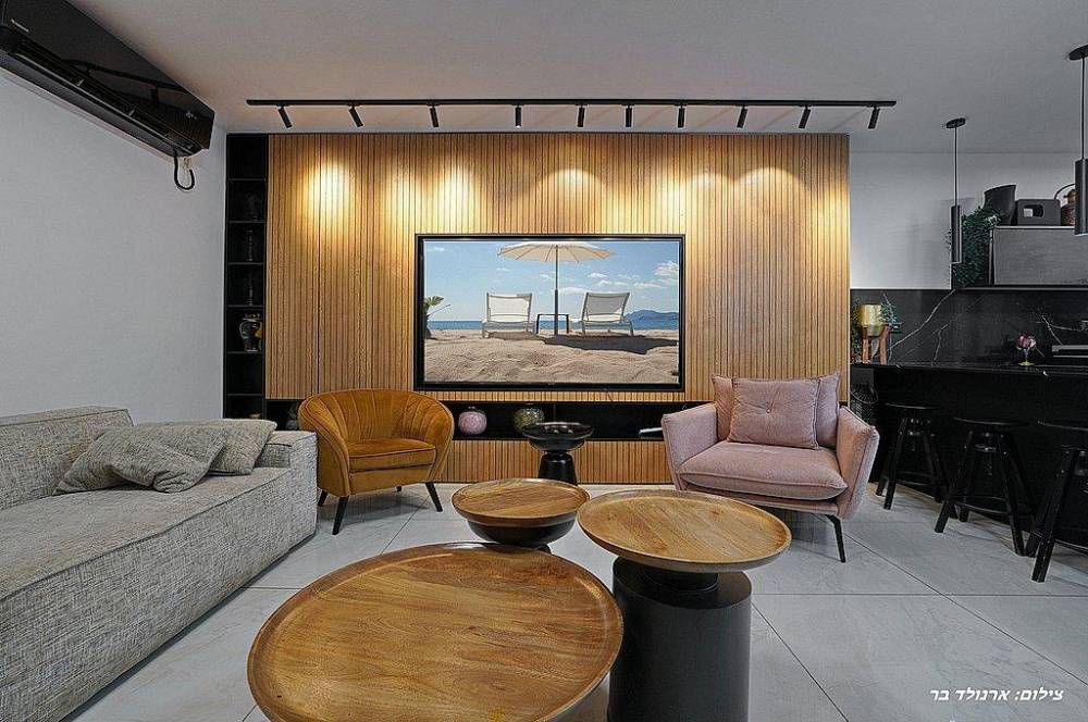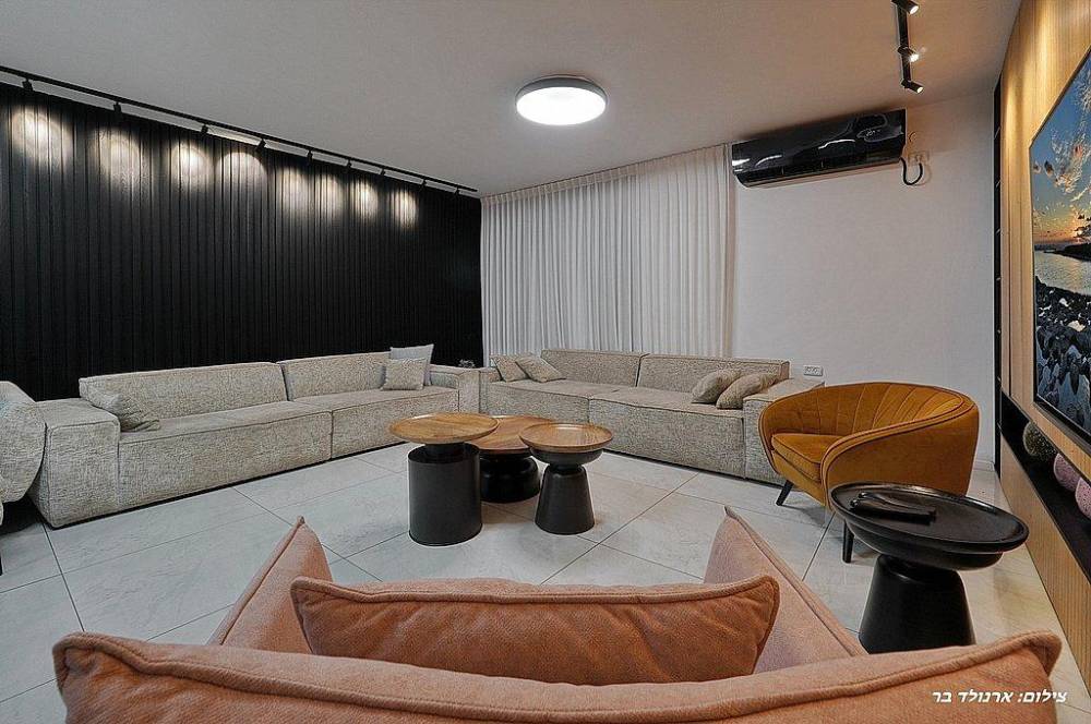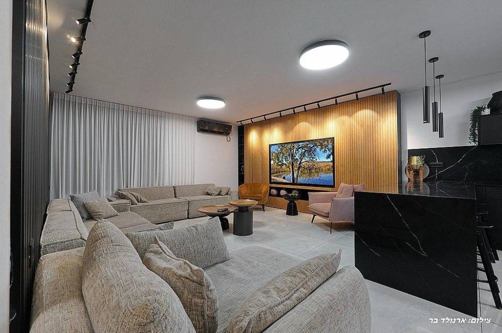 סלון יוקרתי ורחב ידיים עם LCD 65 אינץ וחיבור ל-YES