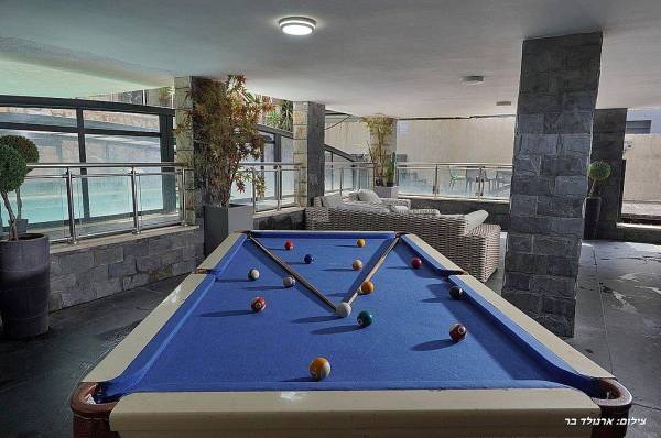 מטבח עם שני מקררים גדולים מסכים גדולים בכל פינה ,שולחן פינגפונג וסנוקר .