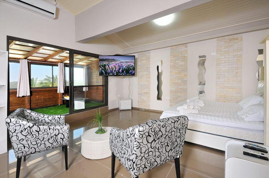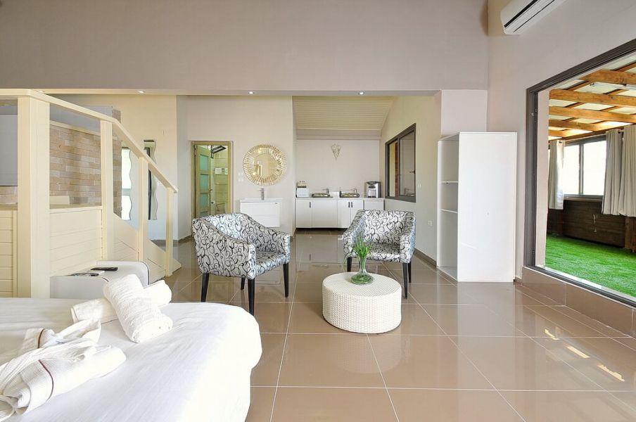 לקבוצות גדולות יש אפשרות להוסיף סוויטת בוטיק (נוף לאוהבים) עם 2 חדרי שינה ובריכת זרמים חמימה במרפסת. ואז תוכלו לקבל וילה עם 8 חדרי שינה.