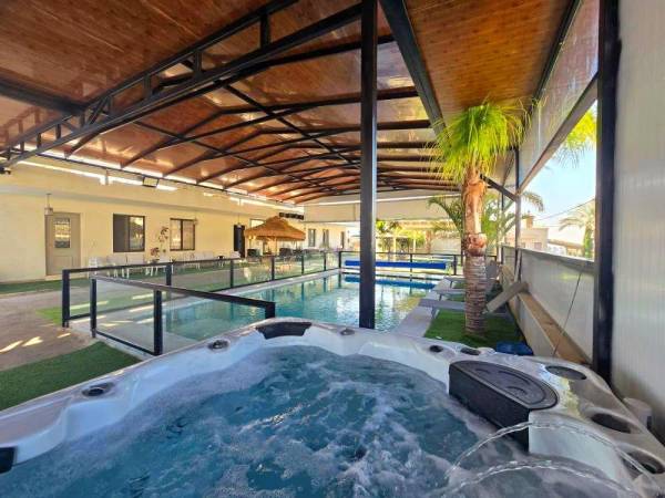בריכת שחייה מחוממת ומקורה בגודל 5×10 מטר עם בריכת ילדים