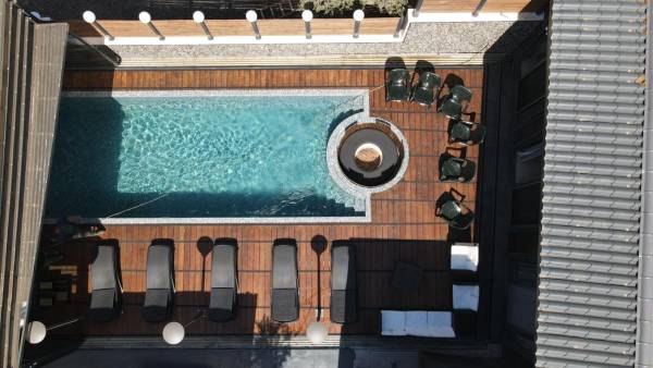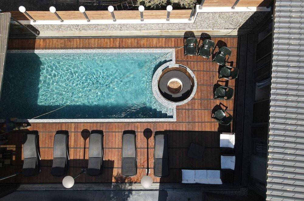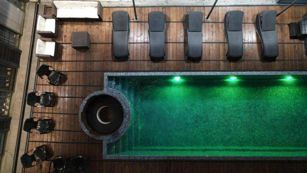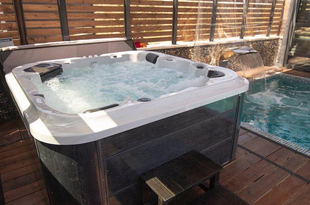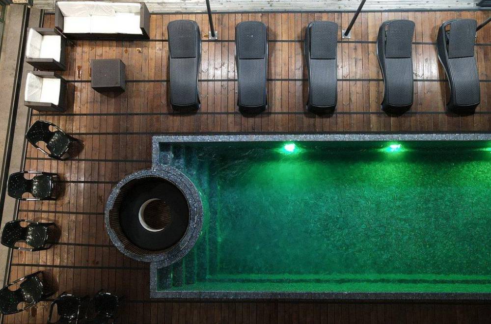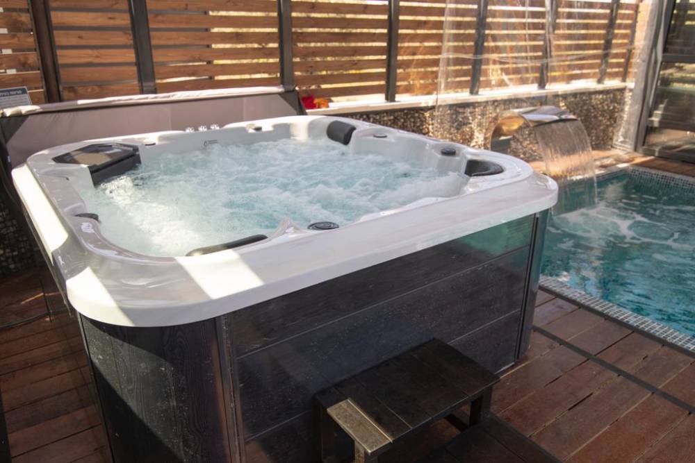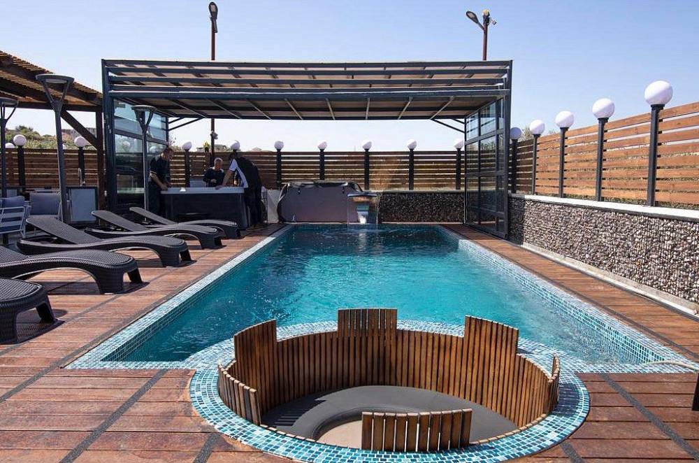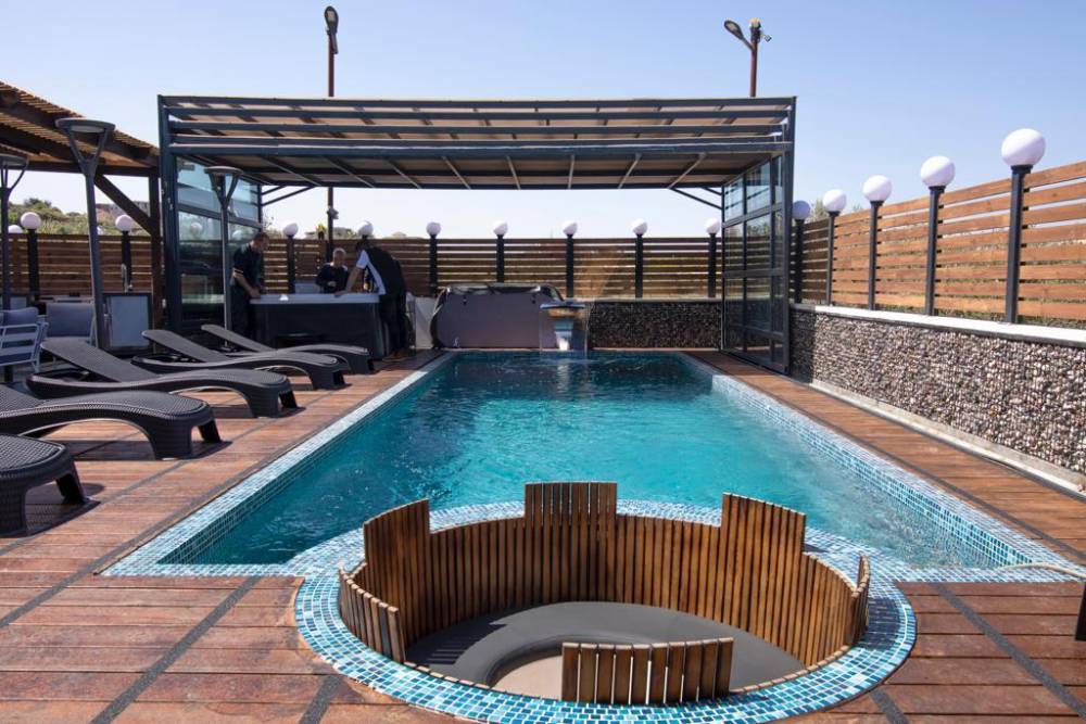 בריכת שחייה מחוממת מקורה עם מפל מים (הבריכה מגודרת)