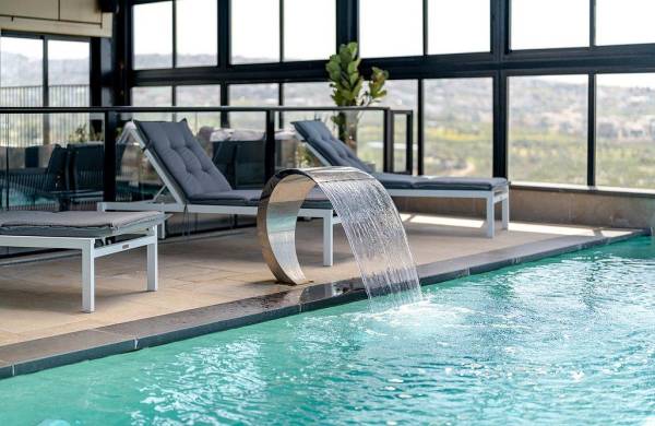 בריכת שחייה מחוממת בחורף, בגודל 8X4 עם מפל מים