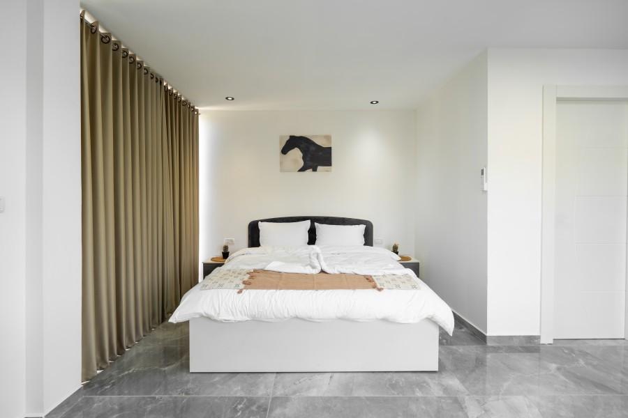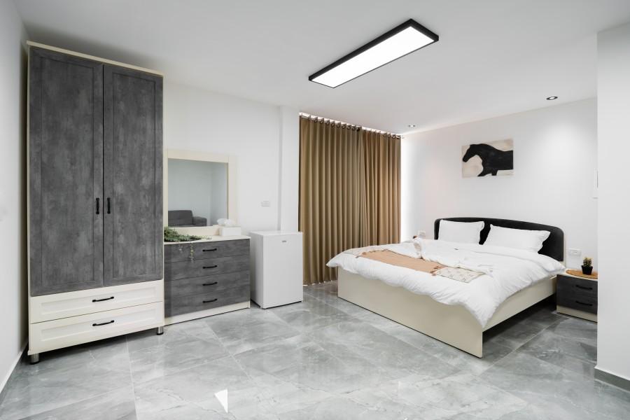 מיטה זוגית עם מזרון אורטופדי, ארון בגדים, שירותים ומקלחת פרטיים, ספה נפתחת למיטה זוגית
