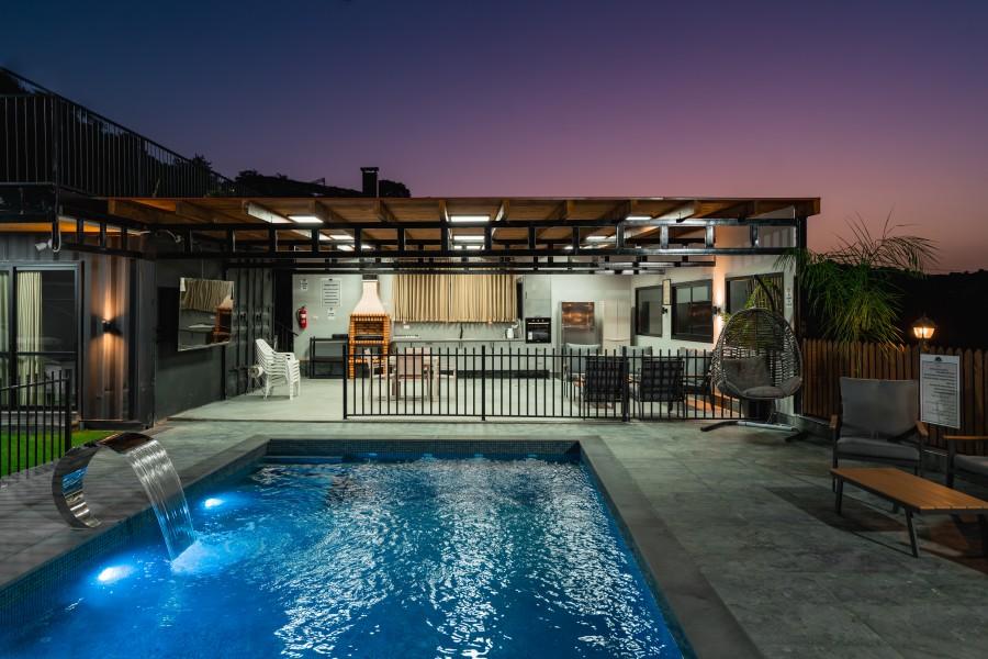 תאורה לילת צבעונית לשעות הערב גם בחצר וגם בבריכת השחייה
