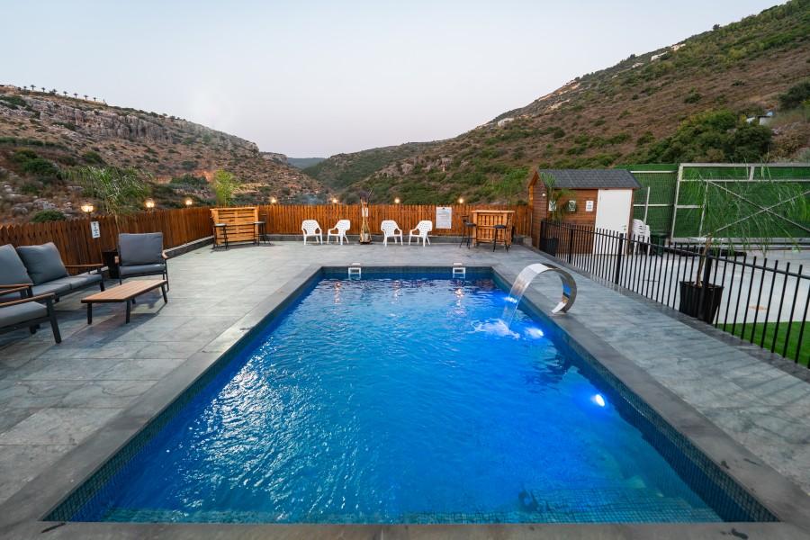 אחוזת נסרין ריזורט מתאימה לאירוח נופש משפחות ומתאימה גם למסיבות ואירועים. במקום תוכלו ליהנות מ- 5 חדרי שינה מפנקים עם חדר רחצה פרטי לכל אחד, כמו כן, קיים מתחם חיצוני עם בריכת שחייה גדולה מחוממת ומקורה, מטבח חוץ מאובזר בכל טוב, סלון משותף עם מסך צפייה ענקי, מדשאות, עצי נוי, פינת BBQ משחקי שולחן ומשחקים לילדים. אנו מזמינים אתכם לחווית נופש ואירוח בלתי נשכחת באחוזת נסרין ריזורט.