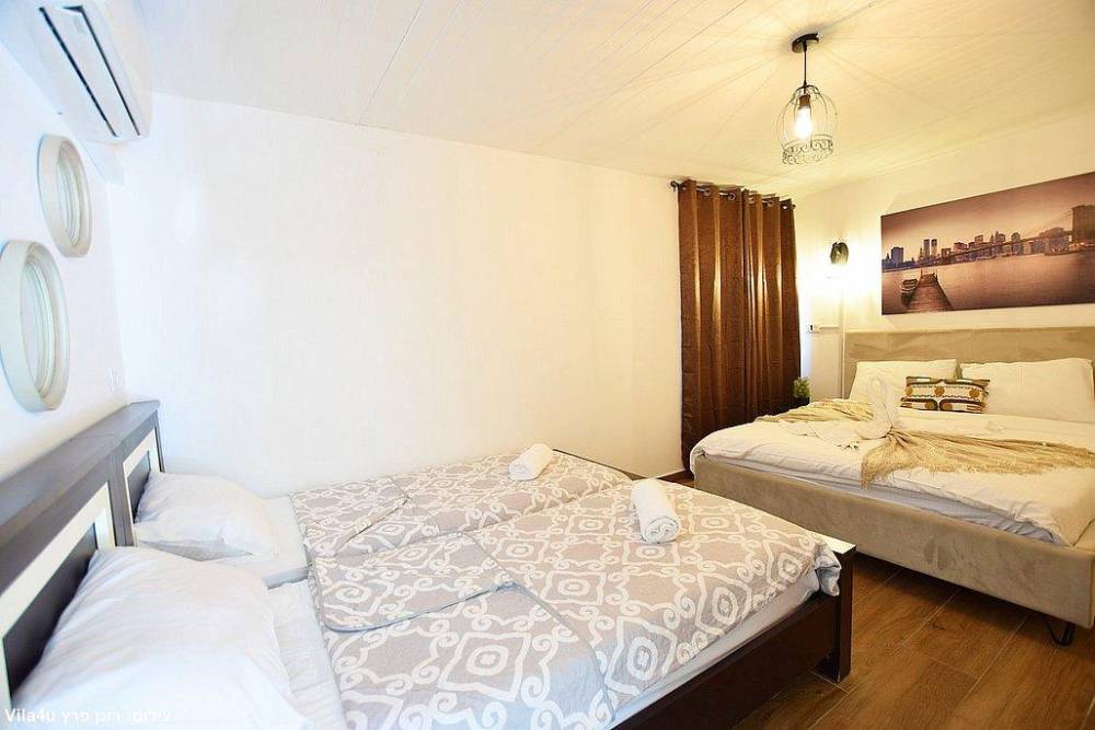 4 חדרי שינה ו3 חדרי רחצה, כל חדר שינה עם מיטה זוגית, מיזוג אוויר ושידות לאחסון
