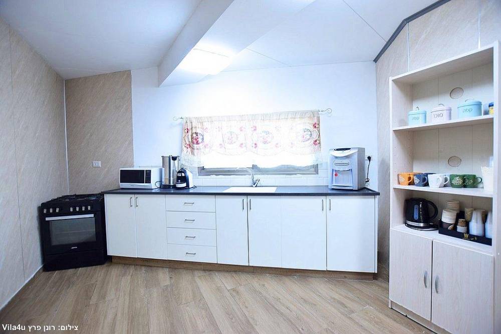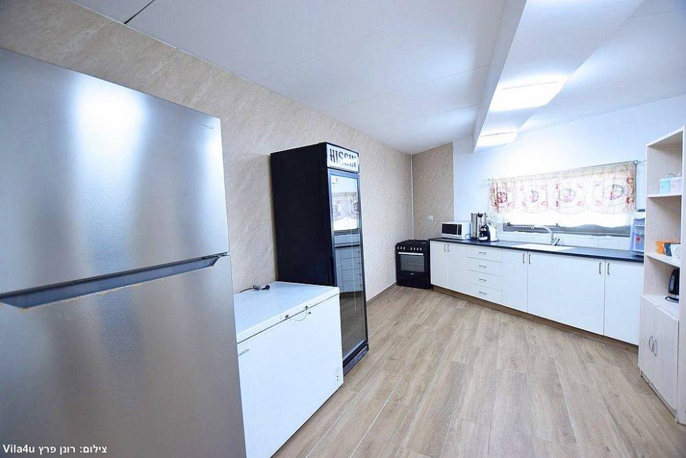 מטבח מאובזר הכולל מתקן מים, 2 מקררים, מקפיא, מיקרוגל, תנור, כיריים גז וכלי אוכל