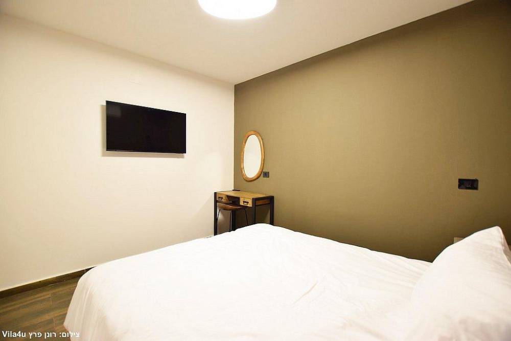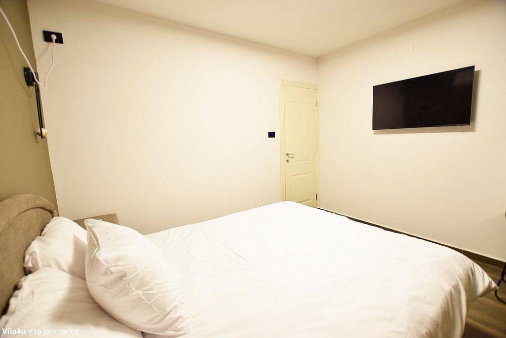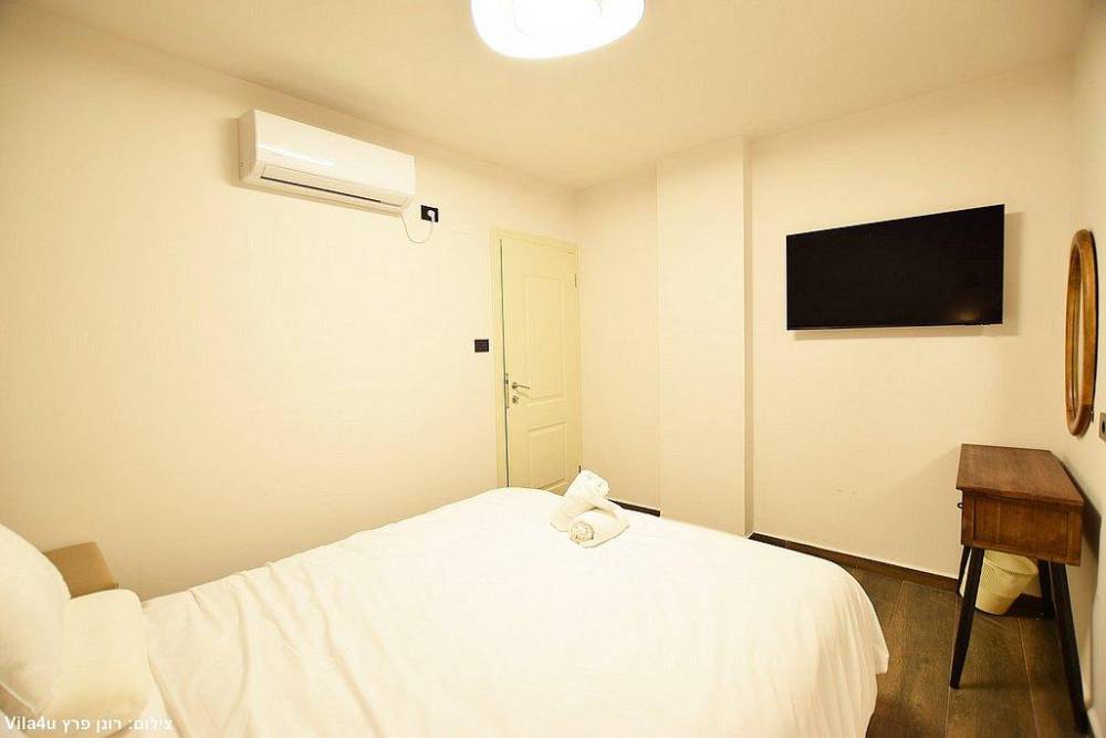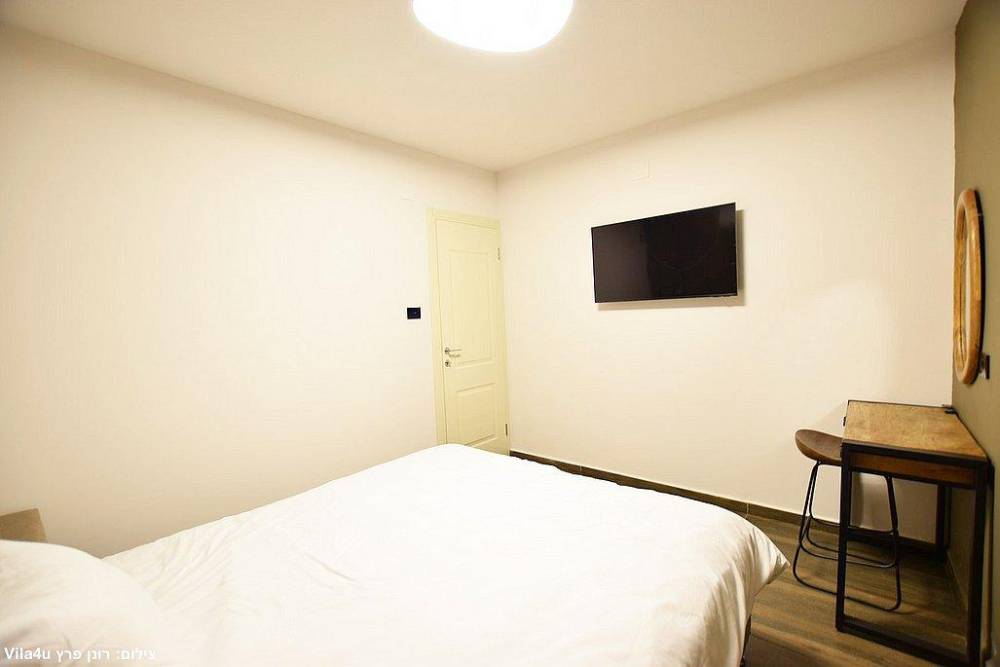 מיטה זוגית, טלוויזיה, מזגן, שידות וארונות לאחסון, סלון קטן הכולל ספה נפתחת + מסך טלוויזיה 85 אינץ'.