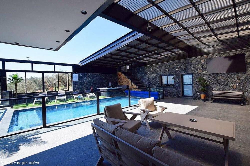 מתחם חיצוני עם קירוי נפתח ונסגר לכל העונות
