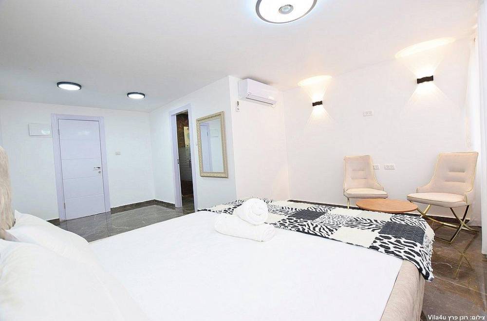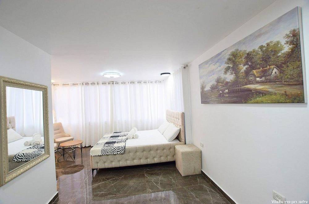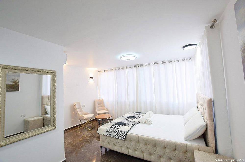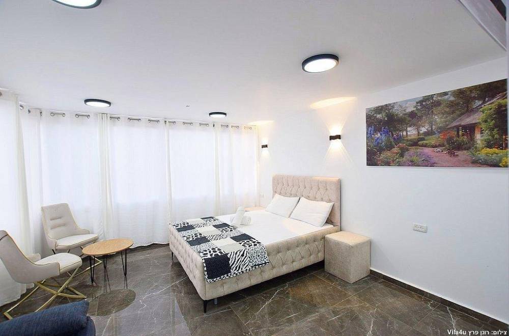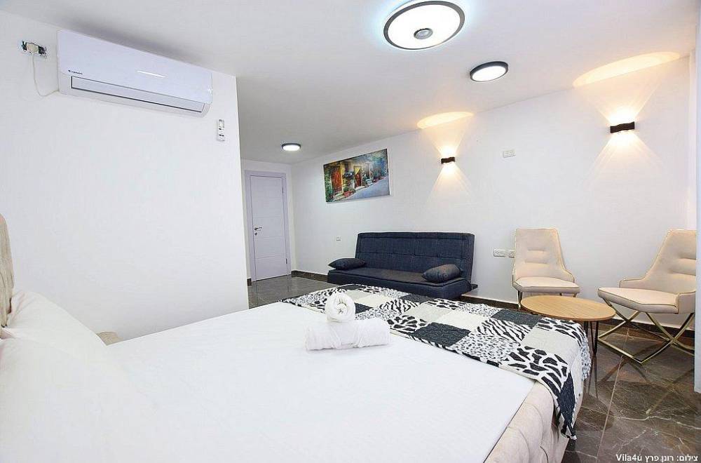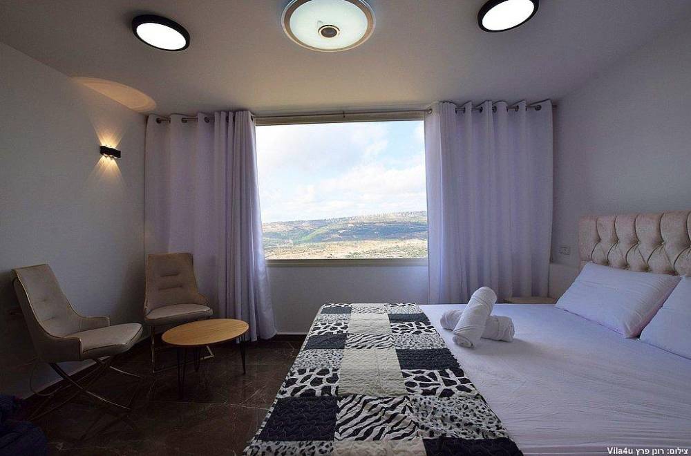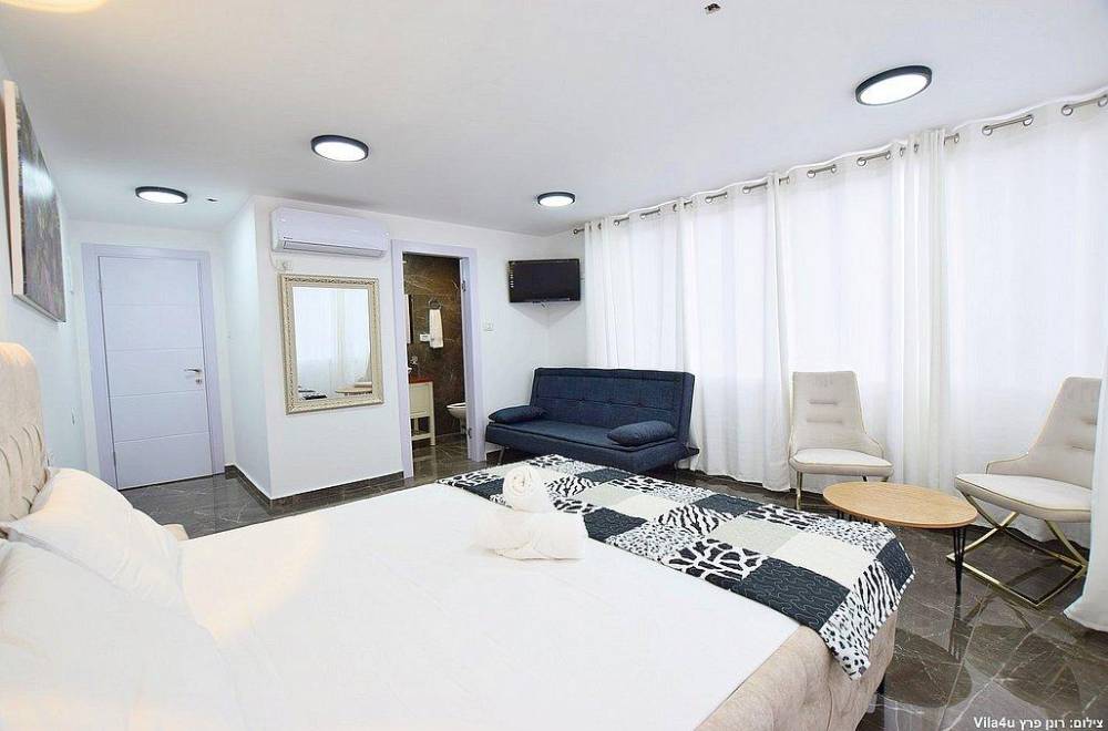 כל חדר שינה: מיטה זוגית, מזגן, טלוויזיה עם חיבור לyes, שידות לאחסון