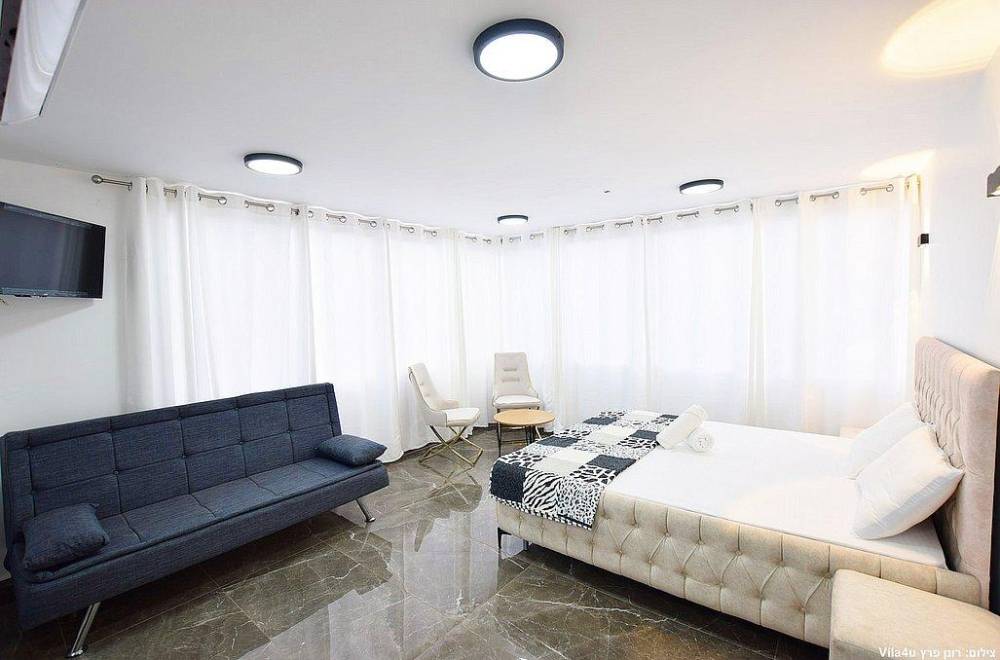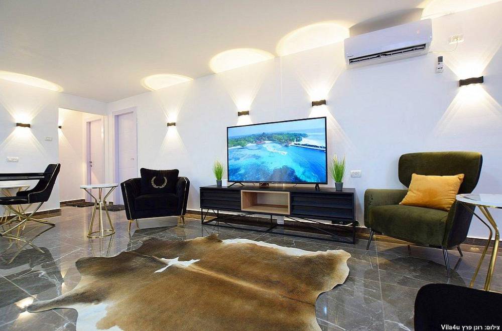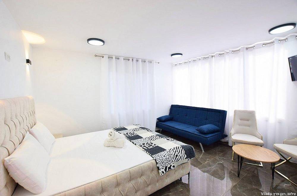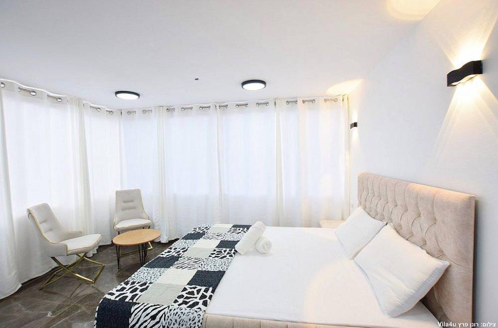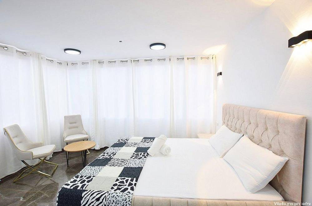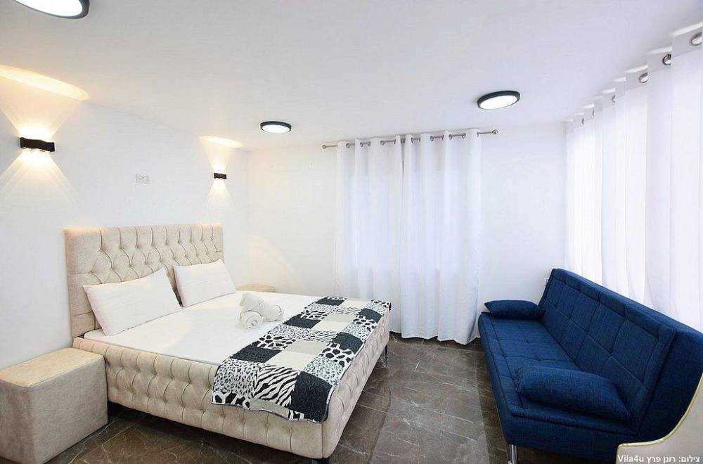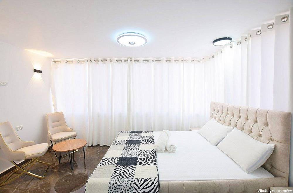 כל חדר שינה: מיטה זוגית, מזגן, טלוויזיה עם חיבור לyes, שידות לאחסון