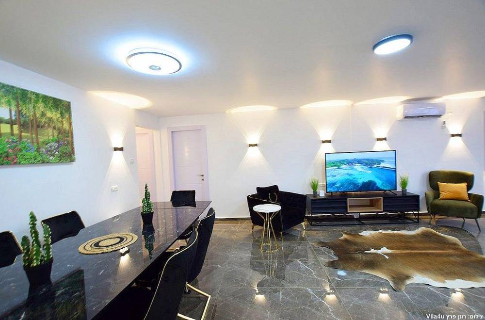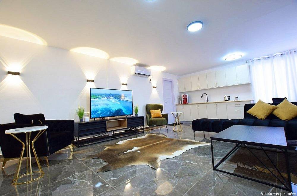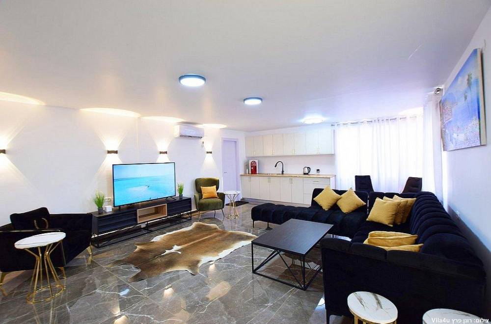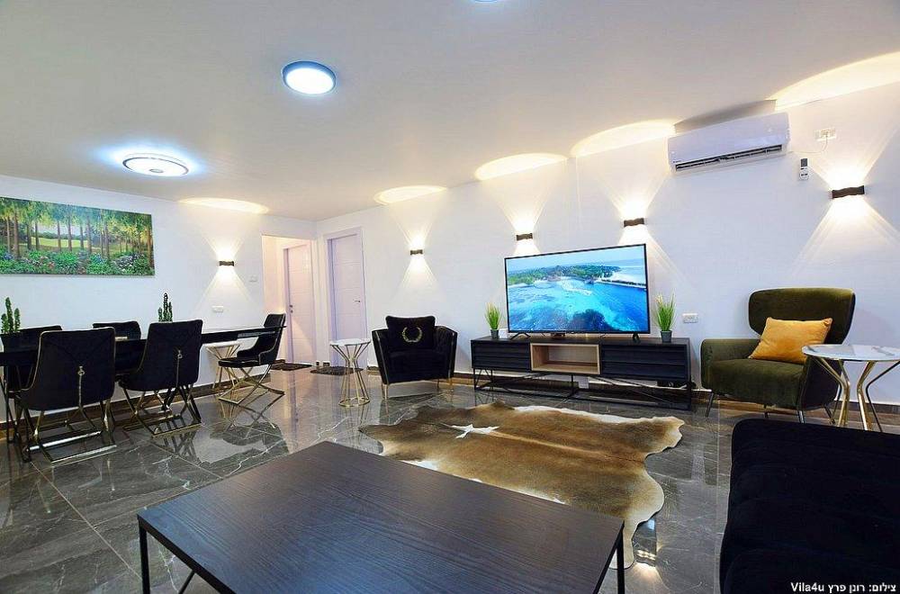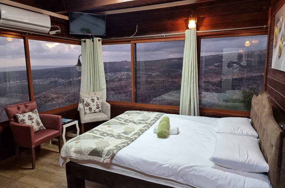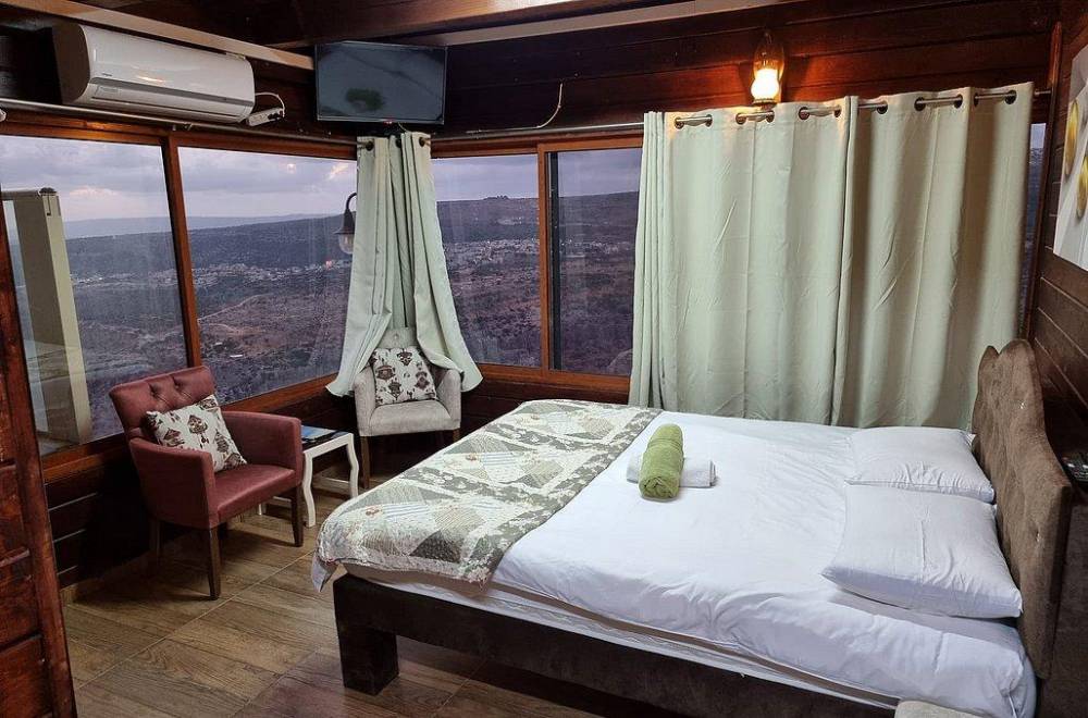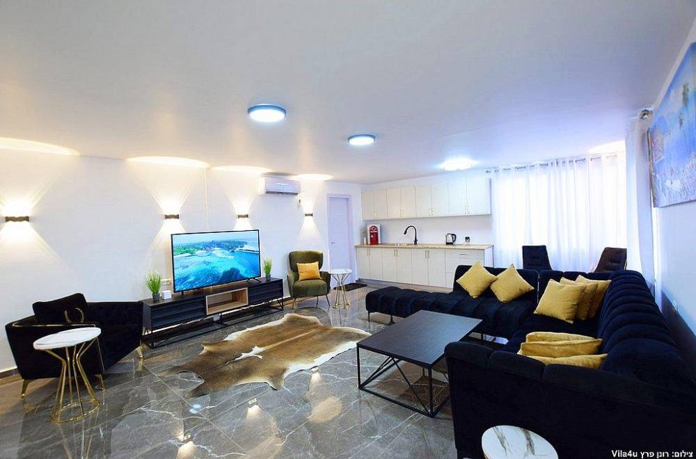 כל חדר שינה: מיטה זוגית, מזגן, טלוויזיה עם חיבור לyes, שידות לאחסון