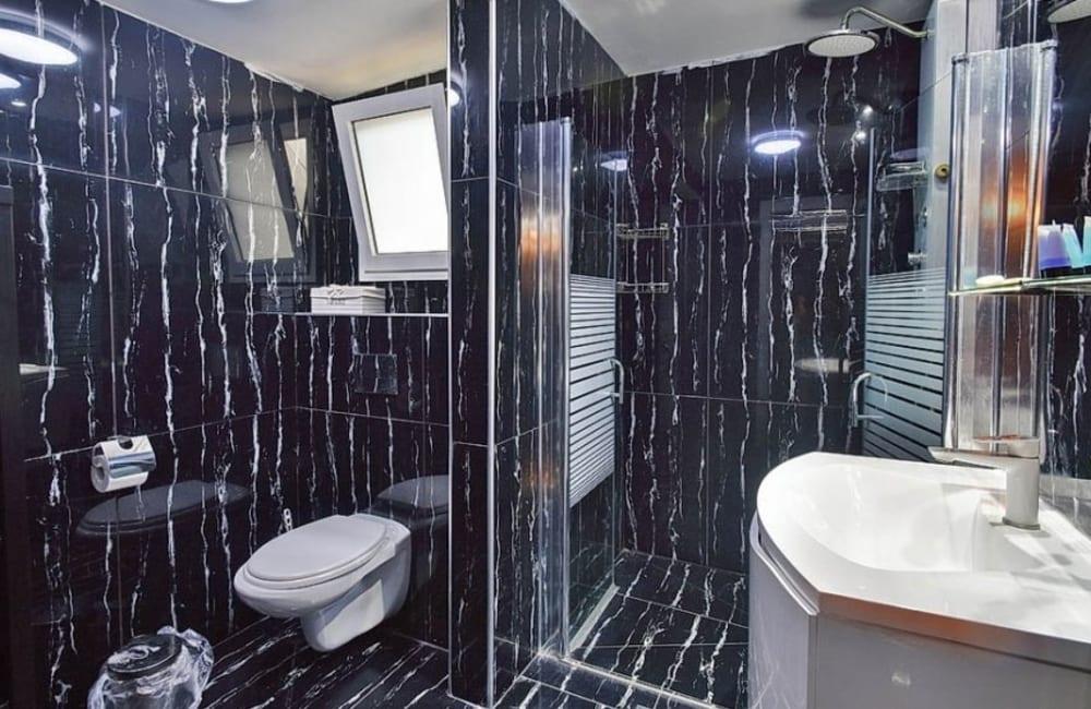 חדר רחצה עם מקלחת ושירותים
