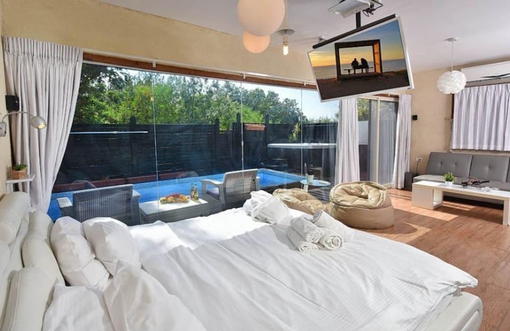 אחוזת פול ויו המהממת ממוקמת במושב מנות שבגליל המערבי, ומציעה לכם חווית נופש יוקרתית ומפנקת. אם אתם מחפשים מקום שבו תוכל ליהנות מהשקט של הצפון לצד נוחות גבוהה ומתקנים ברמה גבוהה – הגעתם למקום הנכון. האחוזה כוללת 2 וילות נופש מרווחות ו-3 סוויטות מאובזרות, אשר מבטיחות לכם חופשה פרטית ומפנקת. כל וילה וסוויטה מציעה חווית נופש אינטימית, עם חדרי שינה נוחים, מסכי צפייה LCD, מתחמים ממוזגים ומטבחים מאובזרים בשלמותם. החצר הפרטית מציעה בריכה חיצונית מחוממת, מדשאות ירוקות ומספר אטרקציות נוספות. אחוזת פול ויו מציעה לכם חופשה באווירה של יוקרה, שמתאימה בדיוק לחופשות משפחתיות, זוגיות, אירועים מסורתיים, וכן חופשות רומנטיות כמו ירח דבש. אל תפספסו את חווית הנופש שתהפוך את החופשה שלכם לבלתי נשכחת.