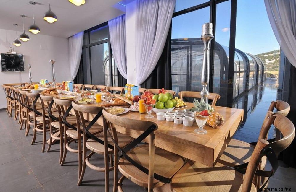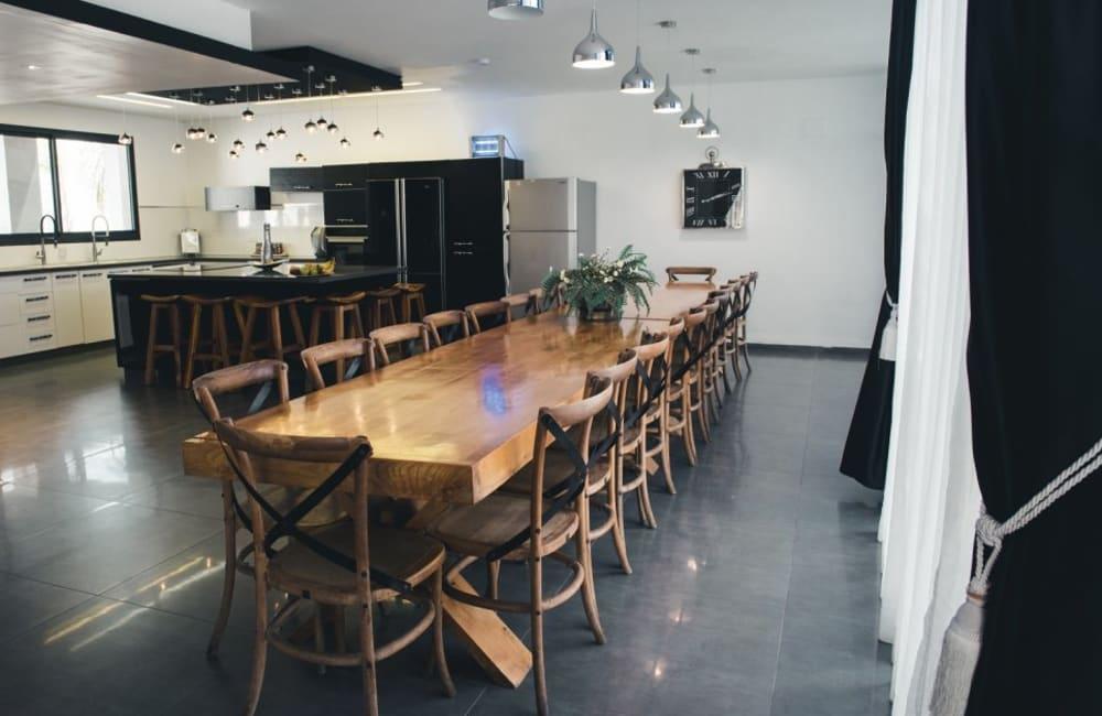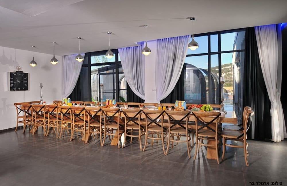 פינת אוכל גדולה המיועדת ל-30 סועדים