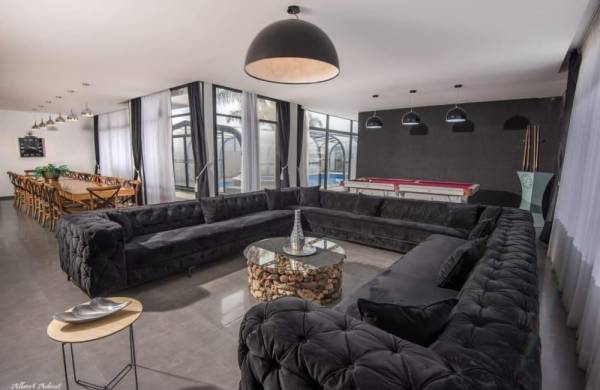 וילה גרנד רויאל היא מתחם נופש יוקרתי ומפנק הכולל 8 חדרי שינה מרווחים עם חדרי רחצה פרטיים לכל אחד. בחלל המרכזי תיהנו מסלון יוקרתי עם מסך 60 אינץ', תאורת לד מעוצבת ומטבח מאובזר עם פינת אוכל ל 30 סועדים. חצר הוילה משתרעת על פני 200 מטרים של פינוק, עם בריכה מחוממת ומקורה, ג'קוזי ספא ופינות שיזוף. הילדים יהנו מגן שעשועים ומתקן נינג'ה מקצועי, בעוד המבוגרים מתחרים בשולחנות הסנוקר והפינג פונג. השילוב בין אבזור מודרני לאטרקציות חוץ הופך את המתחם למקום האידיאלי לחופשה משפחתית מושלמת.