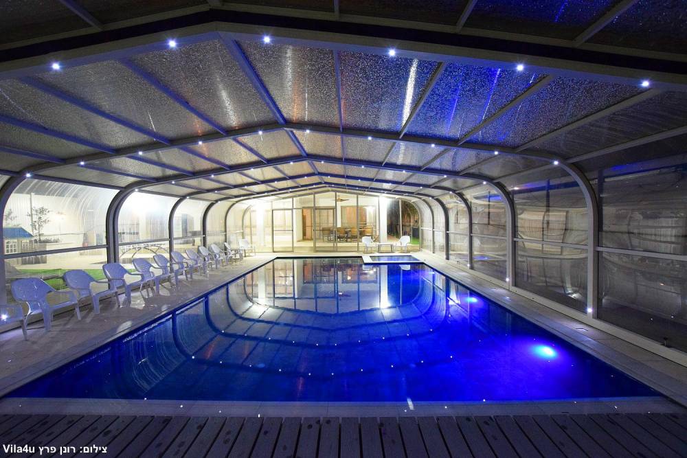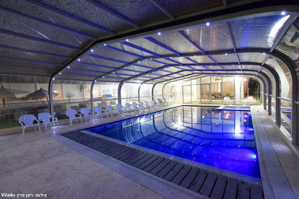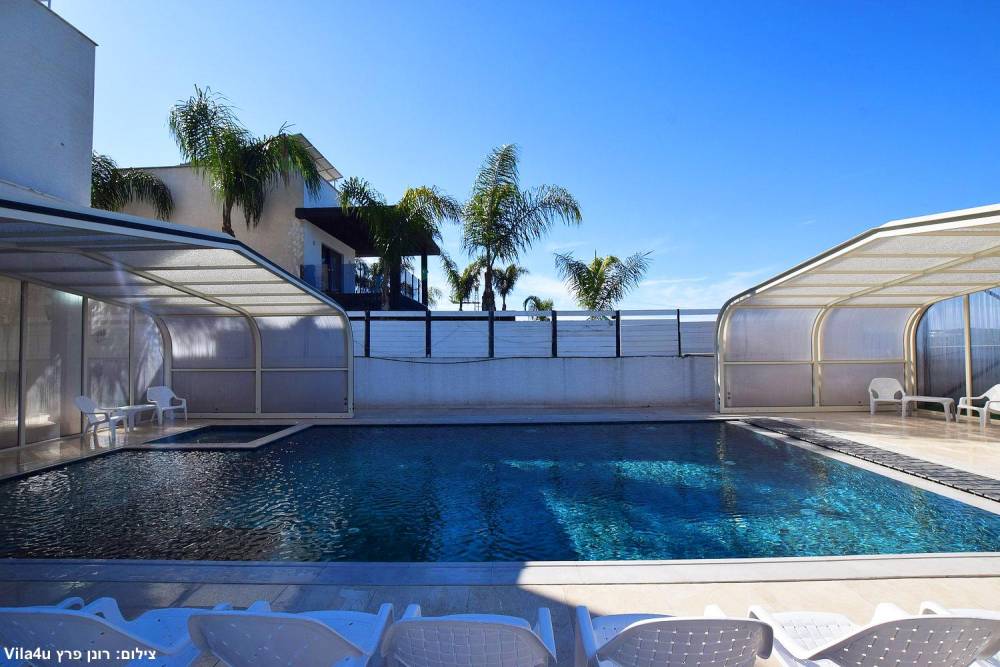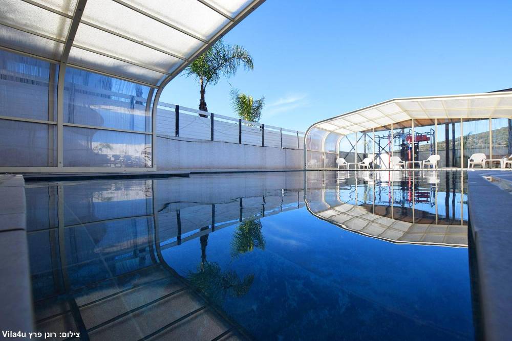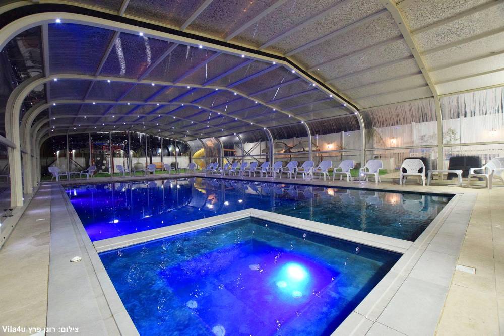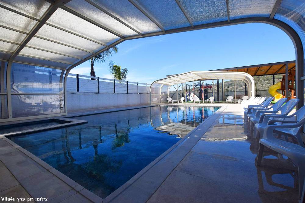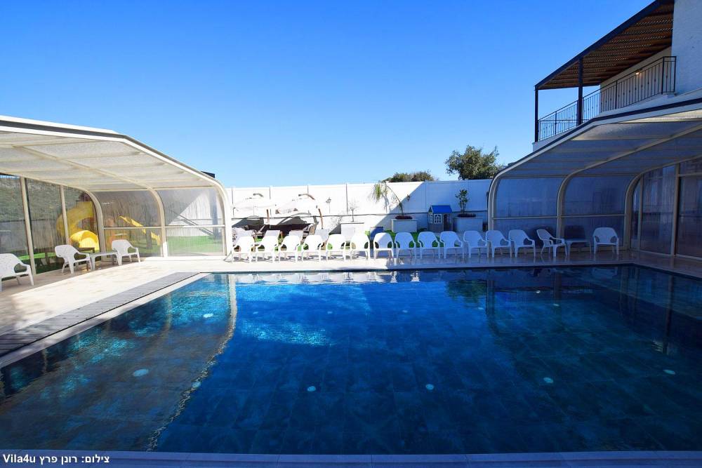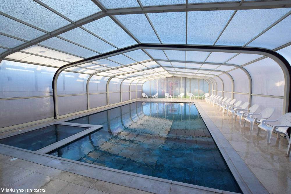 בריכת שחייה ענקית משולבת עם בריכה לילדים וג'קוזי (בגודל 15X6 מטר) הבריכה מחוממת ומקורה בחורף