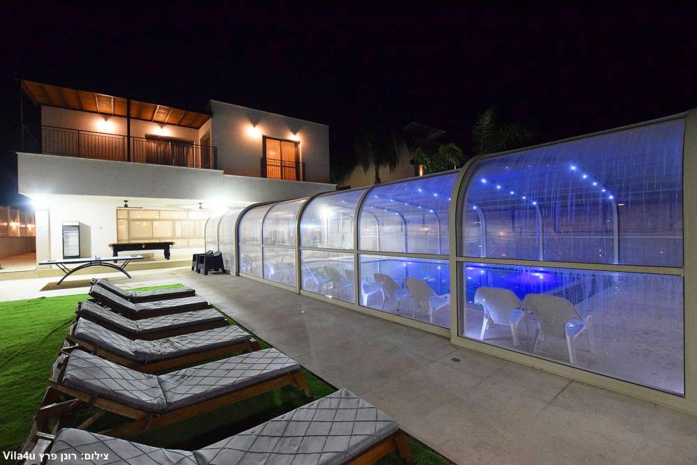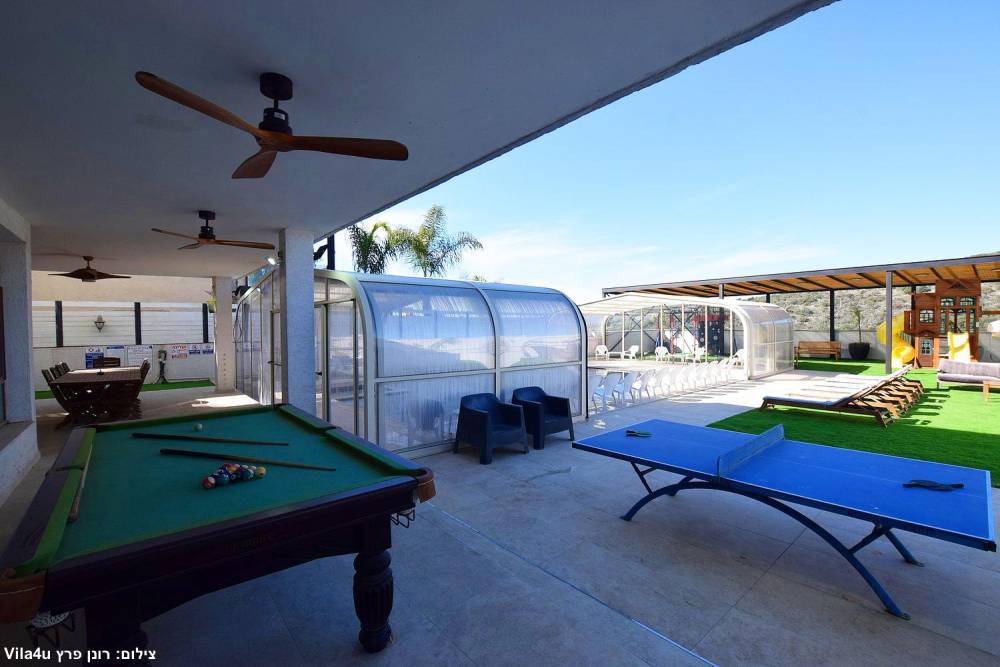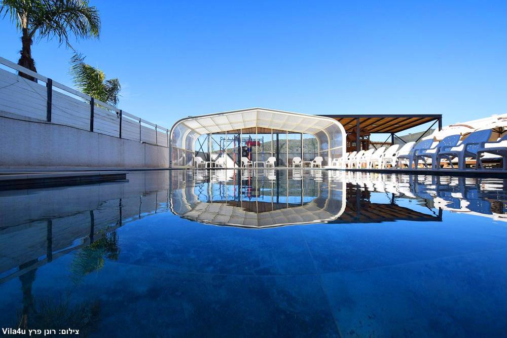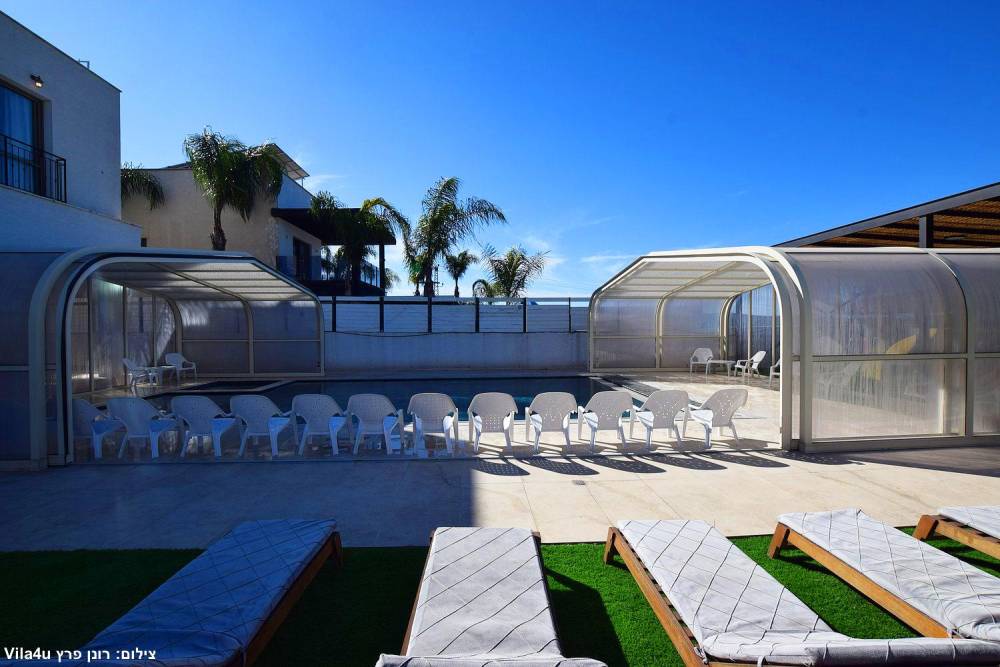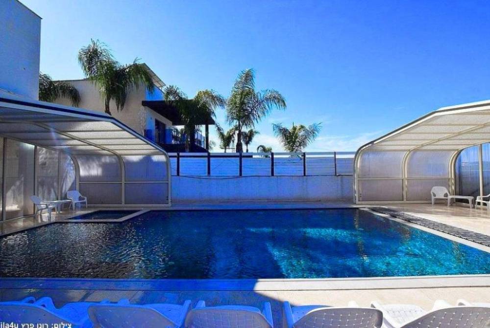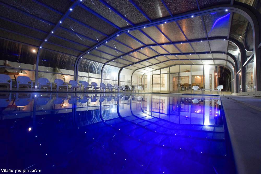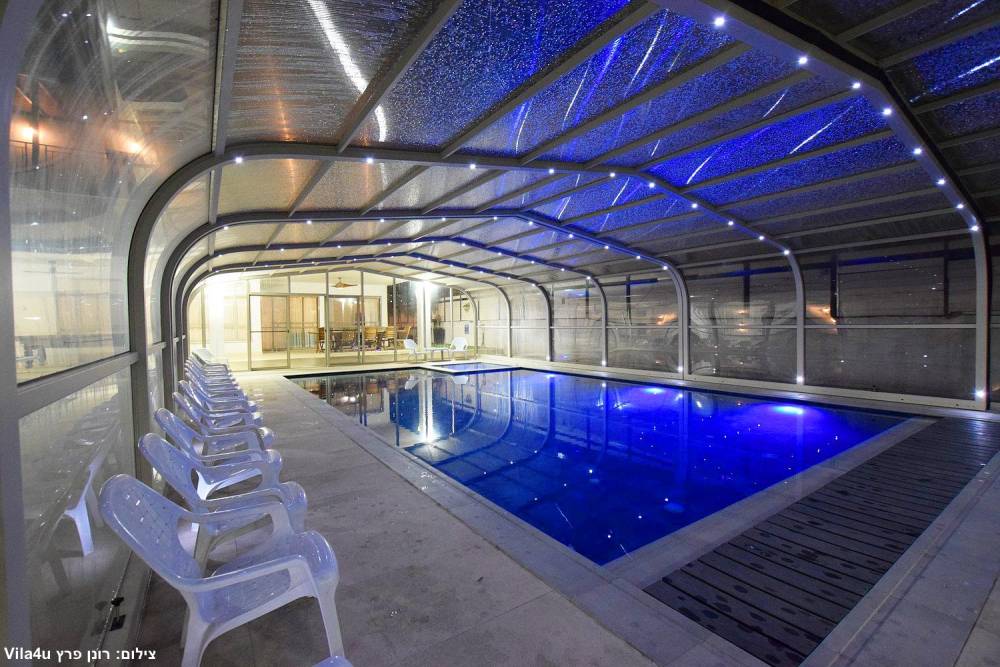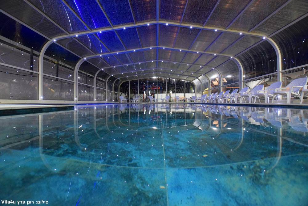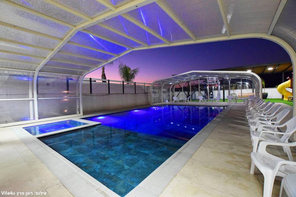 בריכת שחייה ענקית משולבת עם בריכה לילדים וג'קוזי (בגודל 15X6 מטר) הבריכה מחוממת ומקורה בחורף
