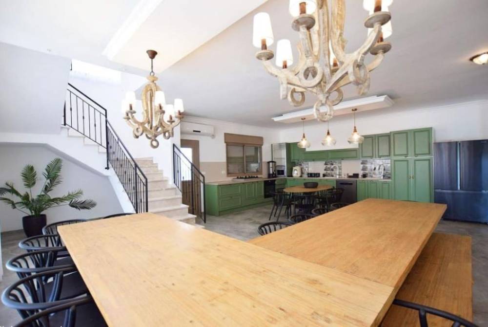 פינת אוכל צמודה למטבח ופינת אוכל גדולה נוספת.