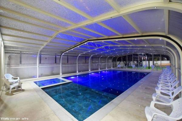 בריכת שחייה גדולה משולבת עם בריכה לילדים וג'קוזי מחוממת מקורה