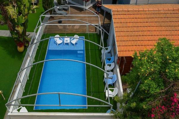 בריכת שחייה פרטית מקורה ומחוממת (8x4) עם רצפת דק איכותית